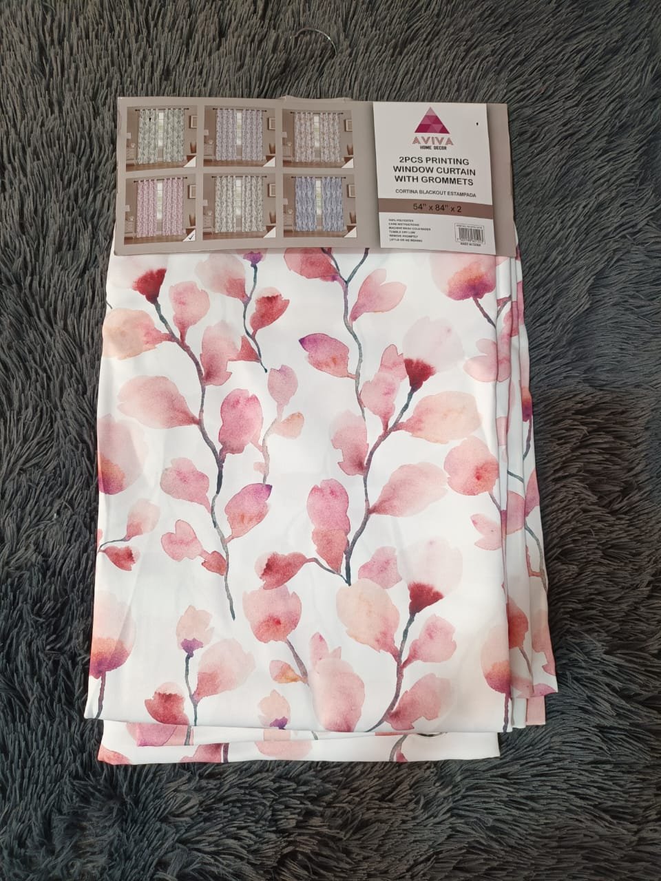 Cortina Black out de flores color rosa, con fondo blanco