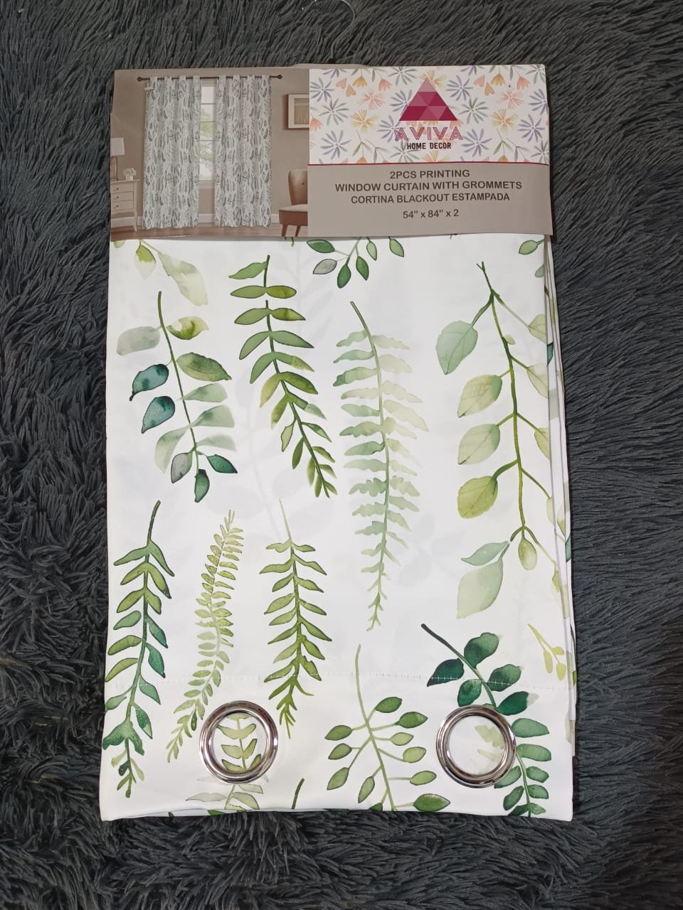 Set de dos Cortina Black out con diseño estampado, con fondo blanco, medidas: 137cm de ancho x 220cm de largo c/u