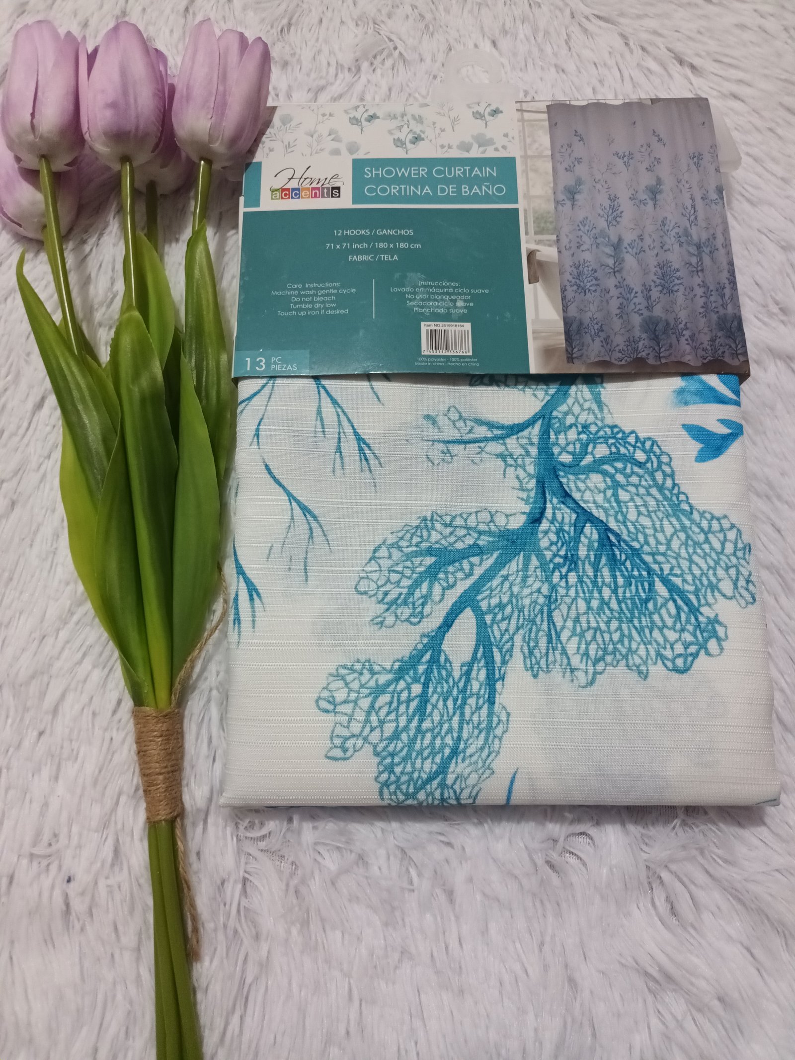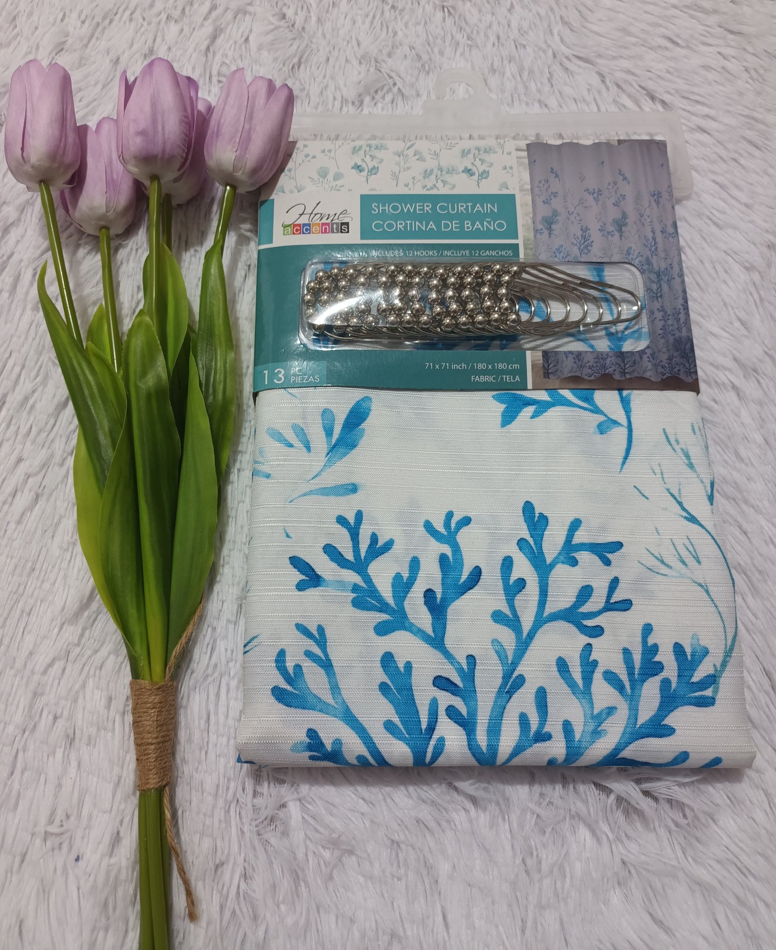 Cortina de baño de tela de 180cm x 180cm El set incluye 13 piezas, 1 cortina y 12 ganchos de metal
