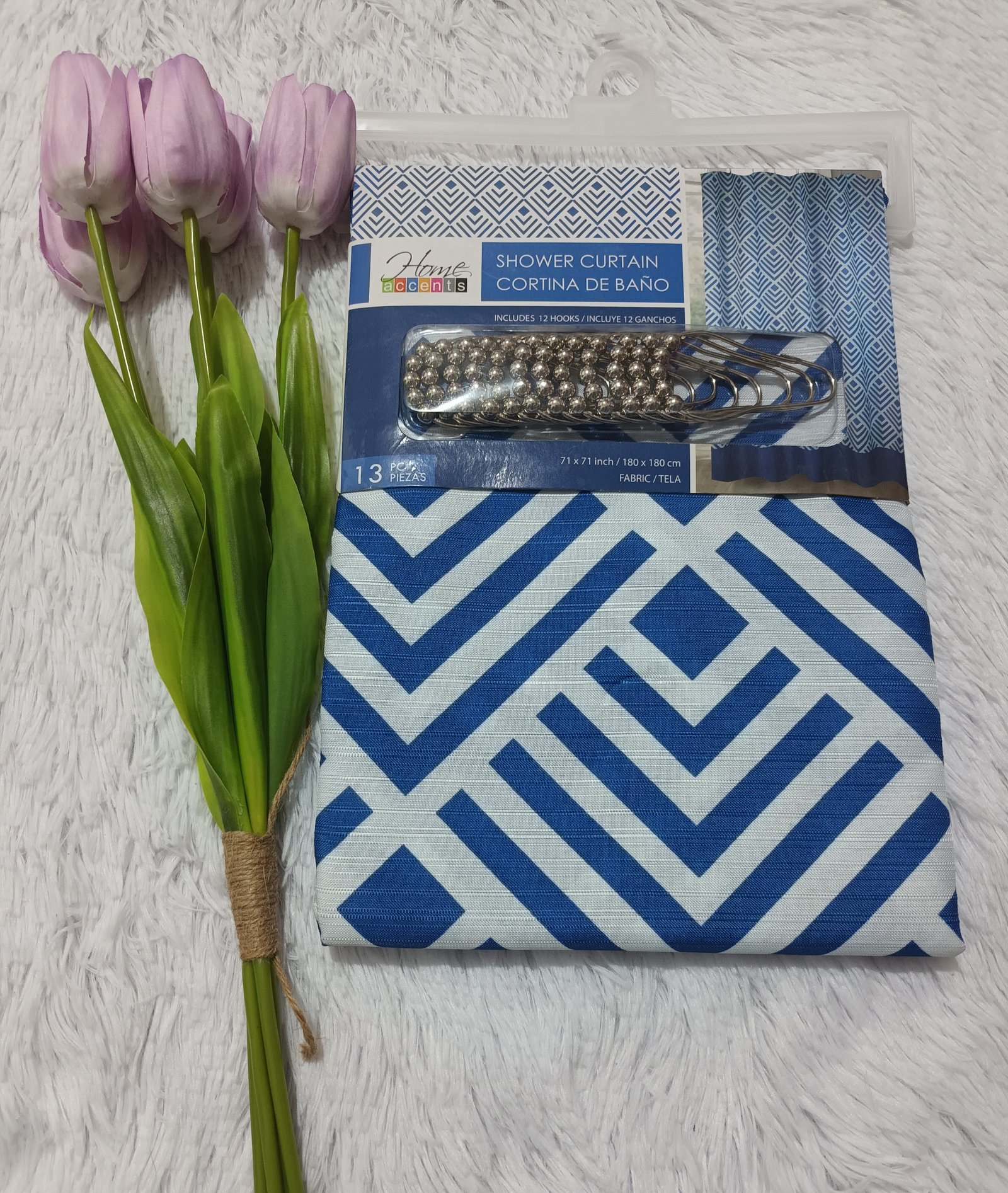 Cortina de baño de tela de 180cm x 180cm El set incluye 13 piezas, 1 cortina y 12 ganchos de metal