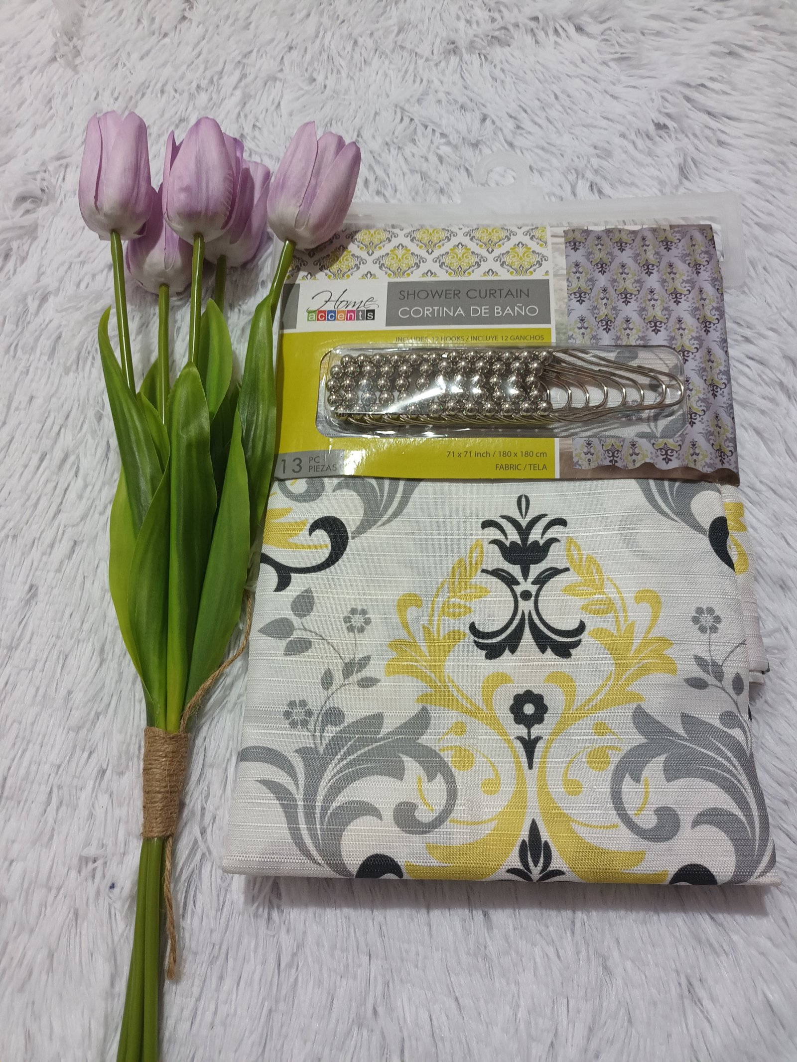 Cortina de baño de tela de 180cm x 180cm El set incluye 13 piezas, 1 cortina y 12 ganchos de metal