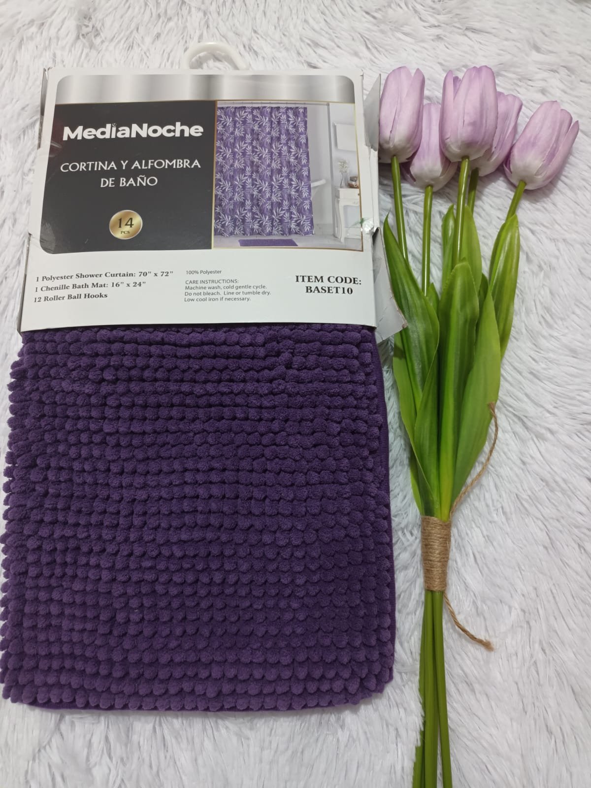 Cortina de baño de tela impermeable de 180cm x 180cm El set incluye 14 piezas, 1 cortina, 12 ganchos de metal y 1 alfombra de baño