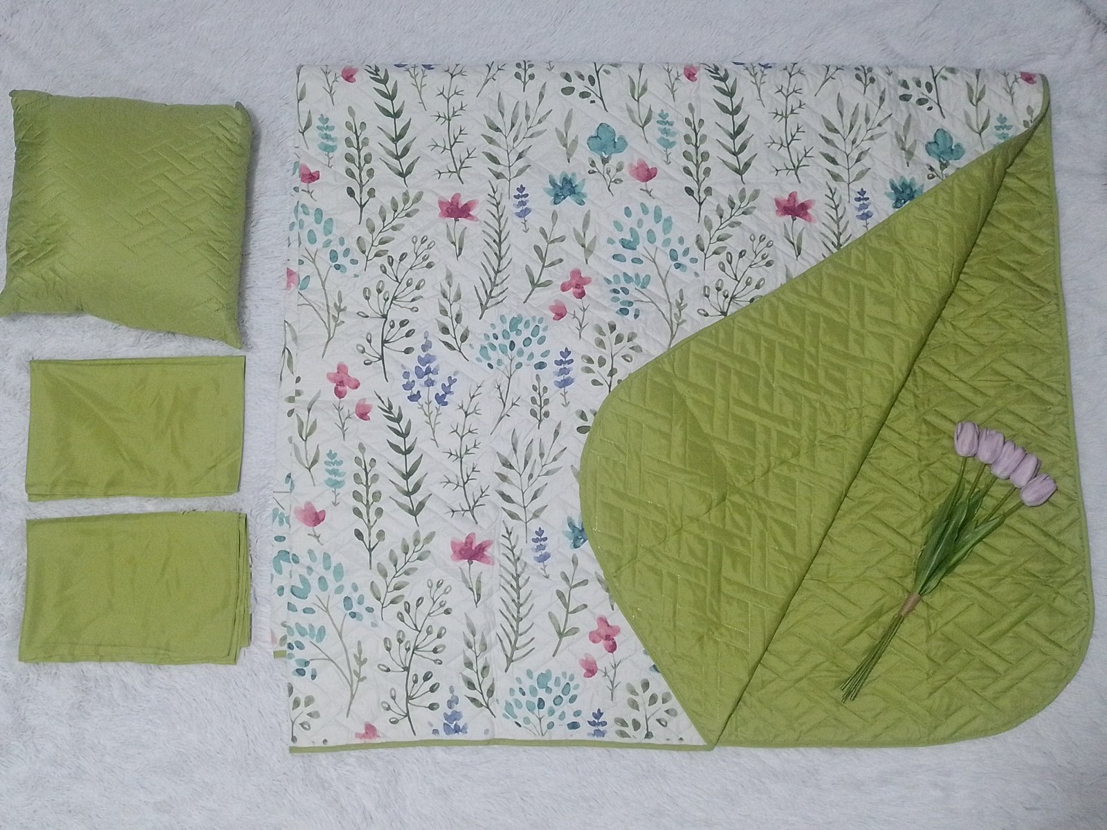 Cubrecama doble vista tamaño king, incluye 1 cubrecama, 2 fundas y 1 almohadón de 45cm x 45cm