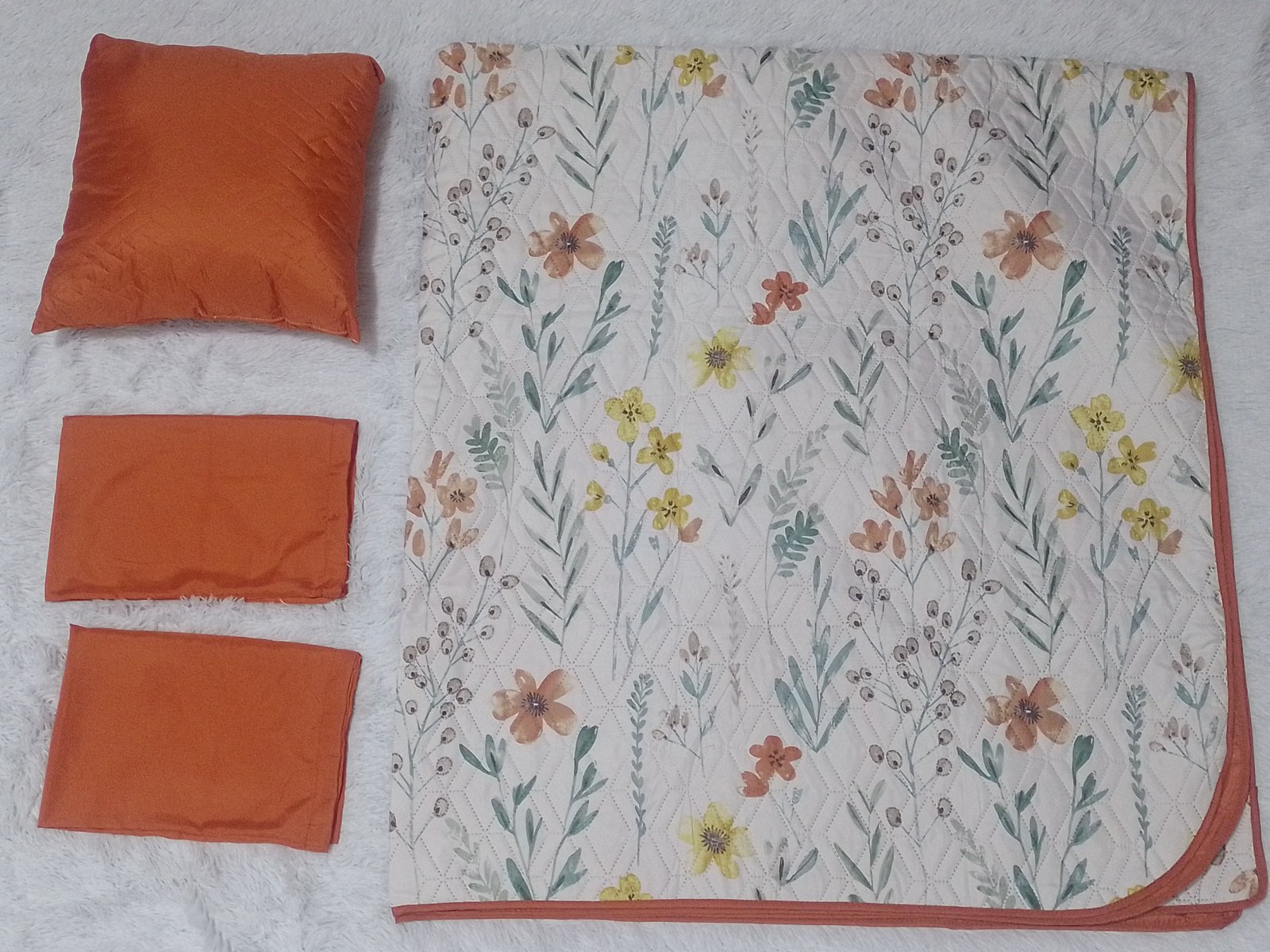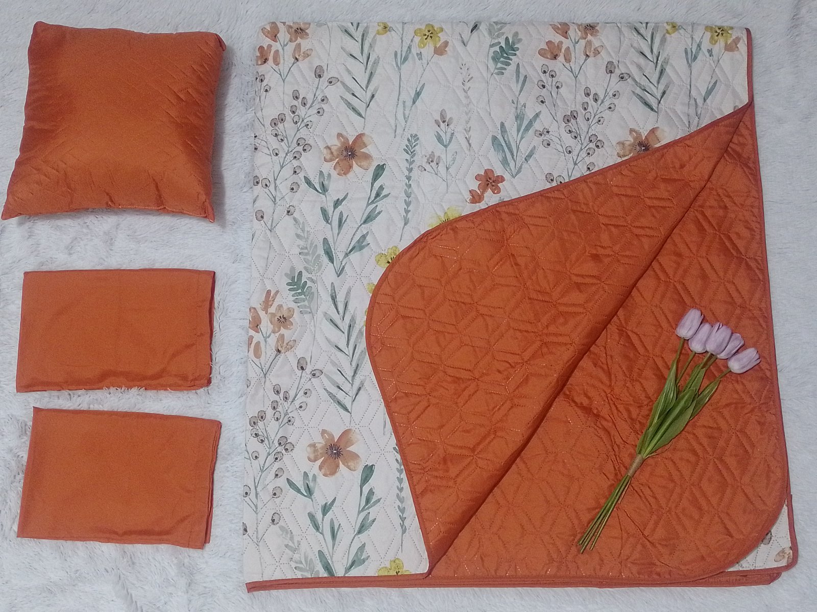Cubrecama doble vista tamaño matrimonial, incluye 1 cubrecama, 2 fundas y 1 almohadón de 45cm x 45cm