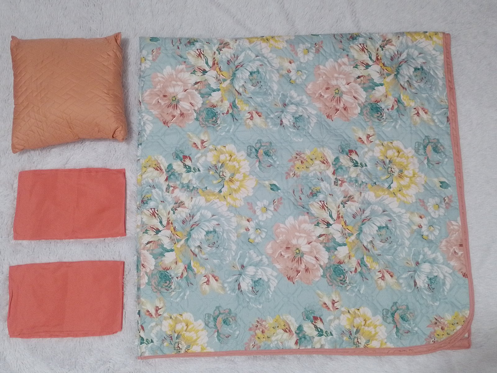 Cubrecama doble vista tamaño matrimonial, incluye 1 cubrecama, 2 fundas y 1 almohadón de 45cm x 45cm