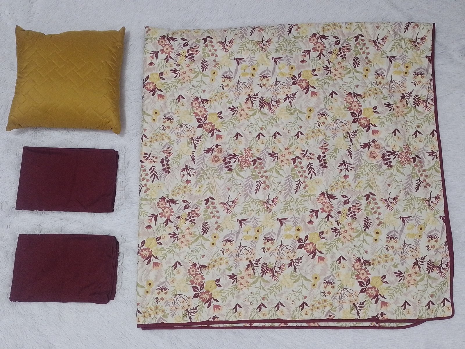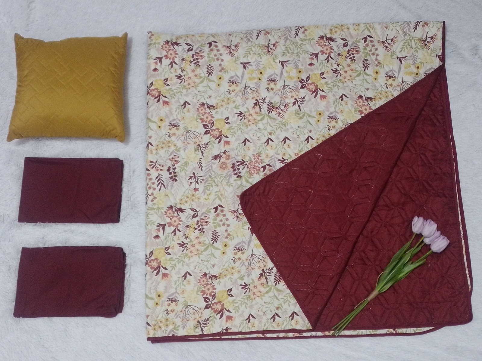 Cubrecama doble vista tamaño Queen, incluye 1 cubrecama, 2 fundas y 1 almohadón de 45cm x 45cm