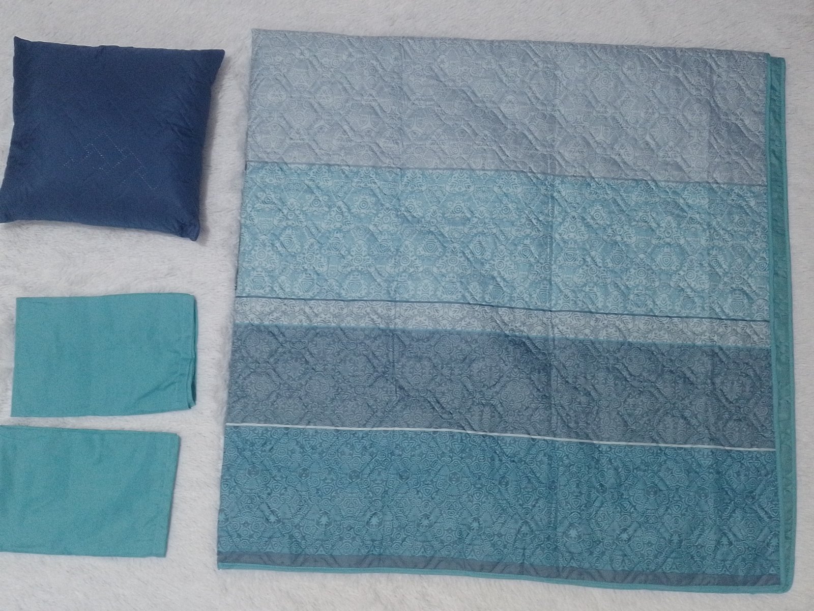 Cubrecama doble vista tamaño Queen, incluye 1 cubrecama, 2 fundas y 1 almohadón de 45cm x 45cm