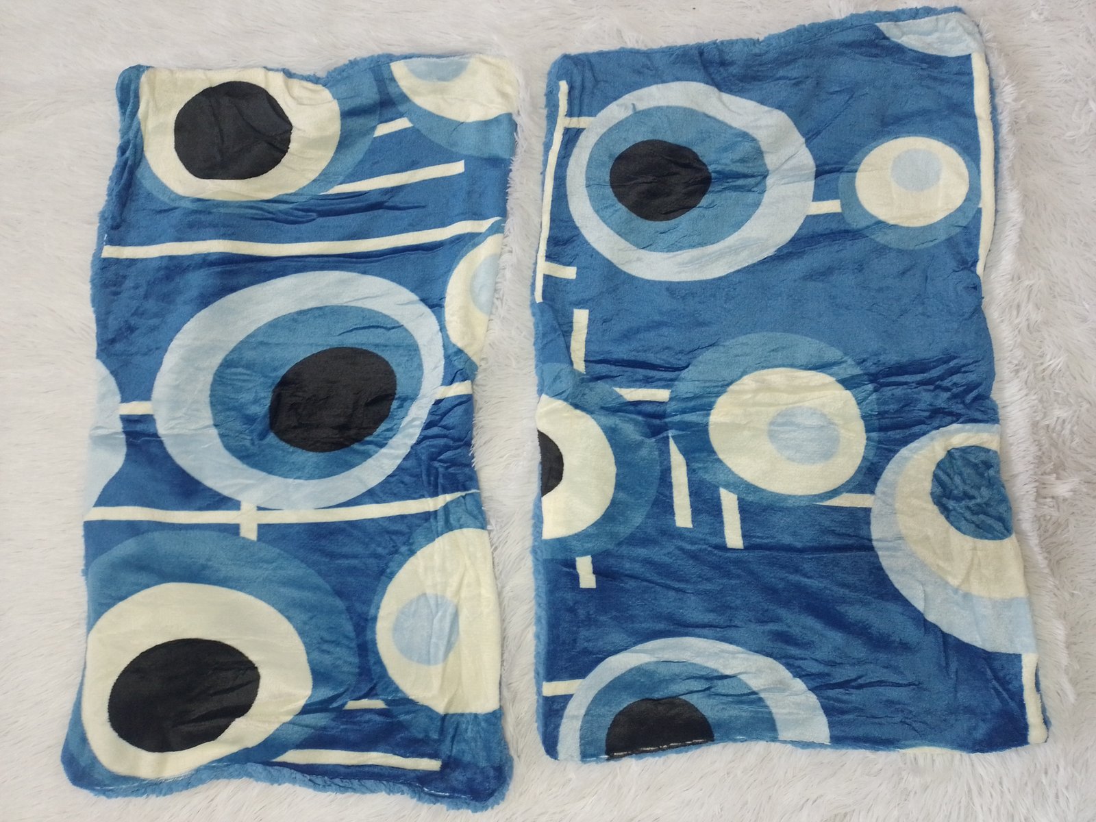 Edredón Enguatado Tamaño Queen - King Color Azul Con Diseño de Circulos, Incluye dos Fundas En cama tamaño King queda sobre puesto En cama tamaño Queen queda con caida