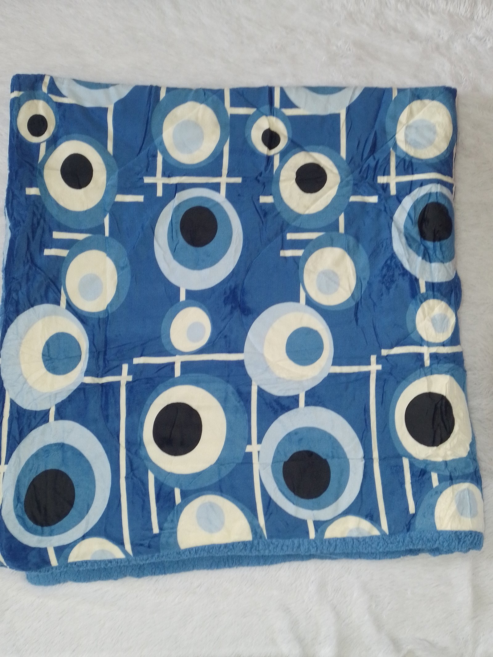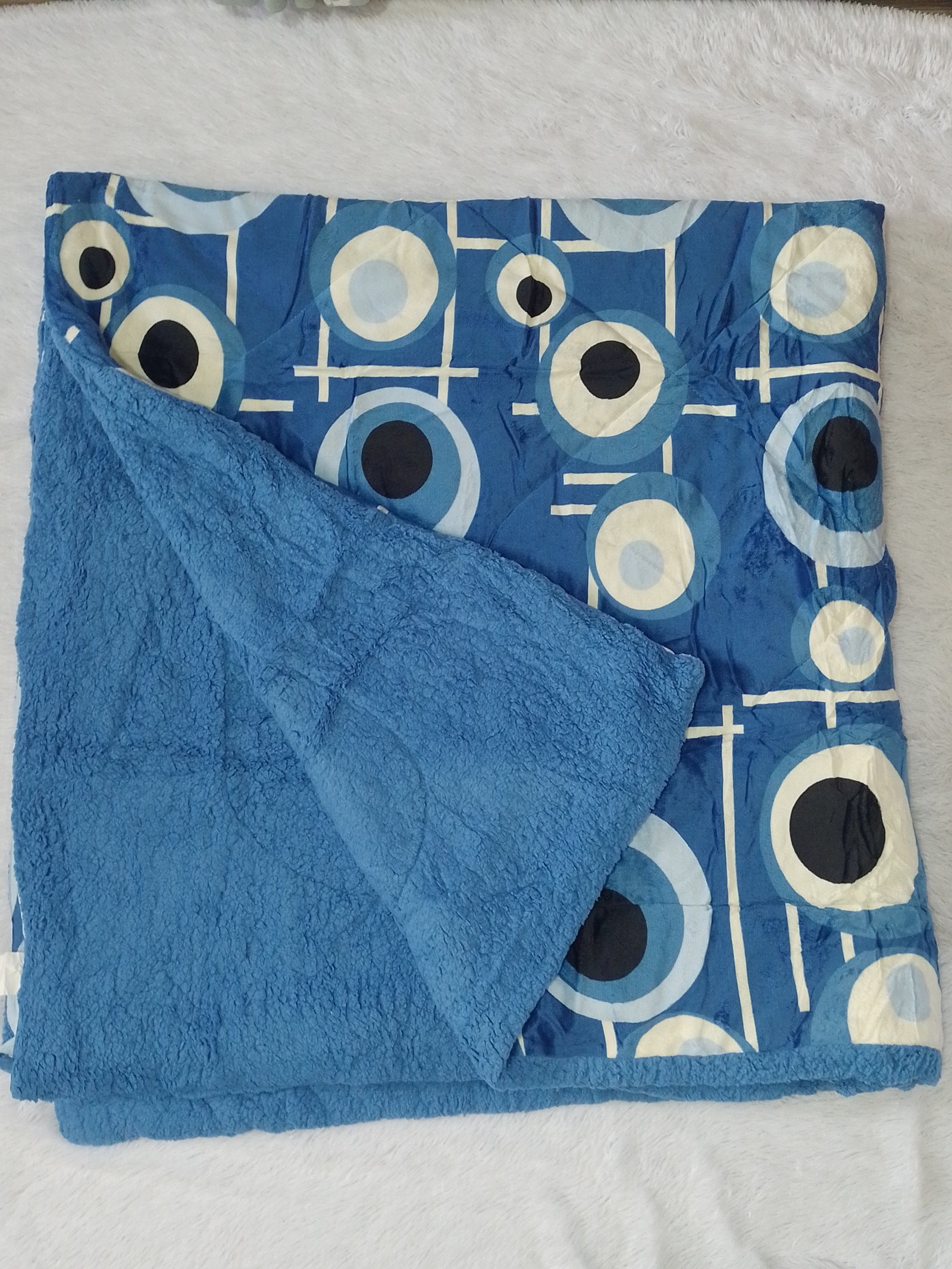 Edredón Enguatado Tamaño Queen - King Color Azul Con Diseño de Circulos