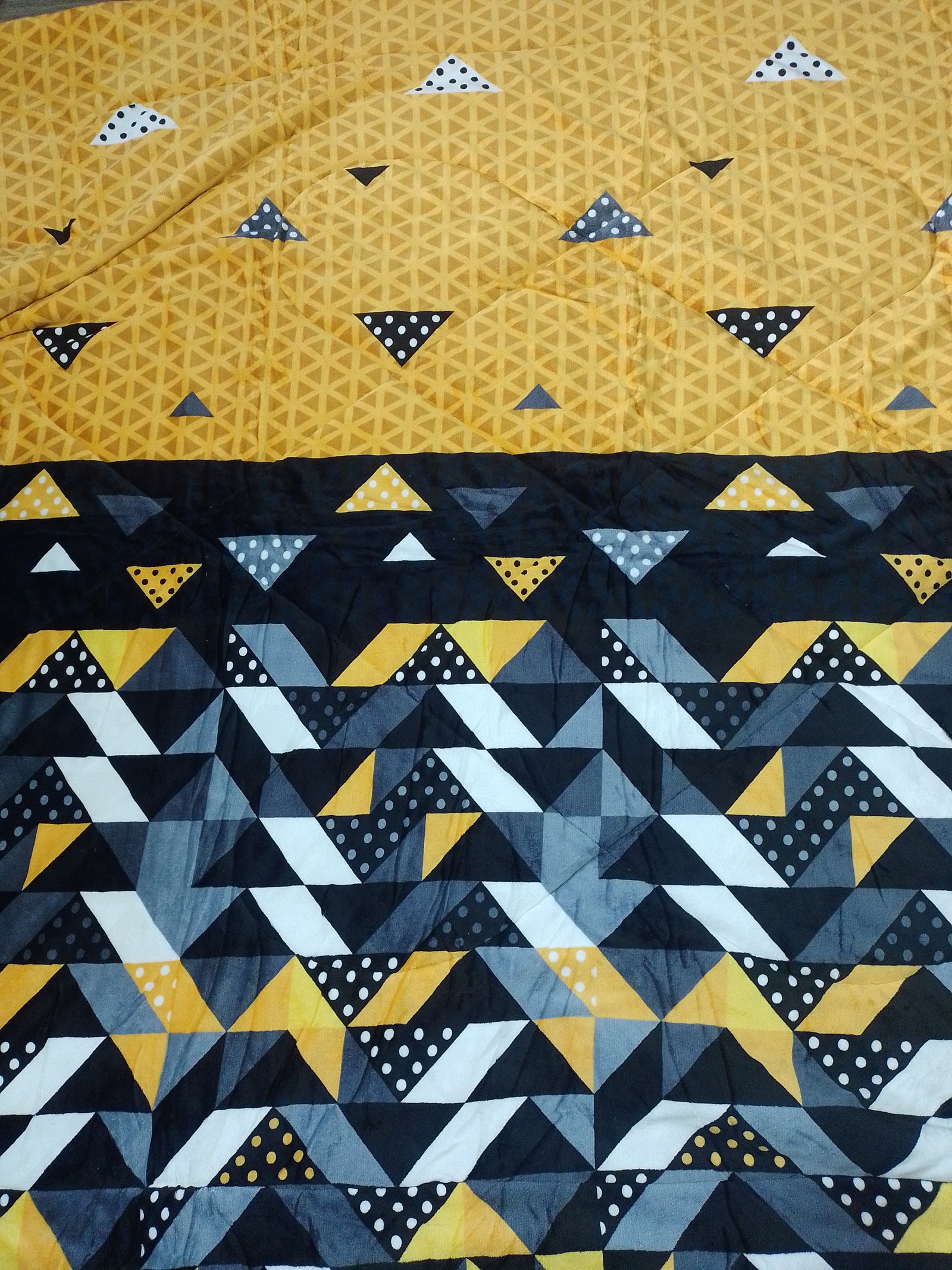 Edredón Enguatado Tamaño Queen - King Color Color Negro y Amarillo , Incluye dos Fundas En cama tamaño King queda sobre puesto En cama tamaño Queen queda con caida