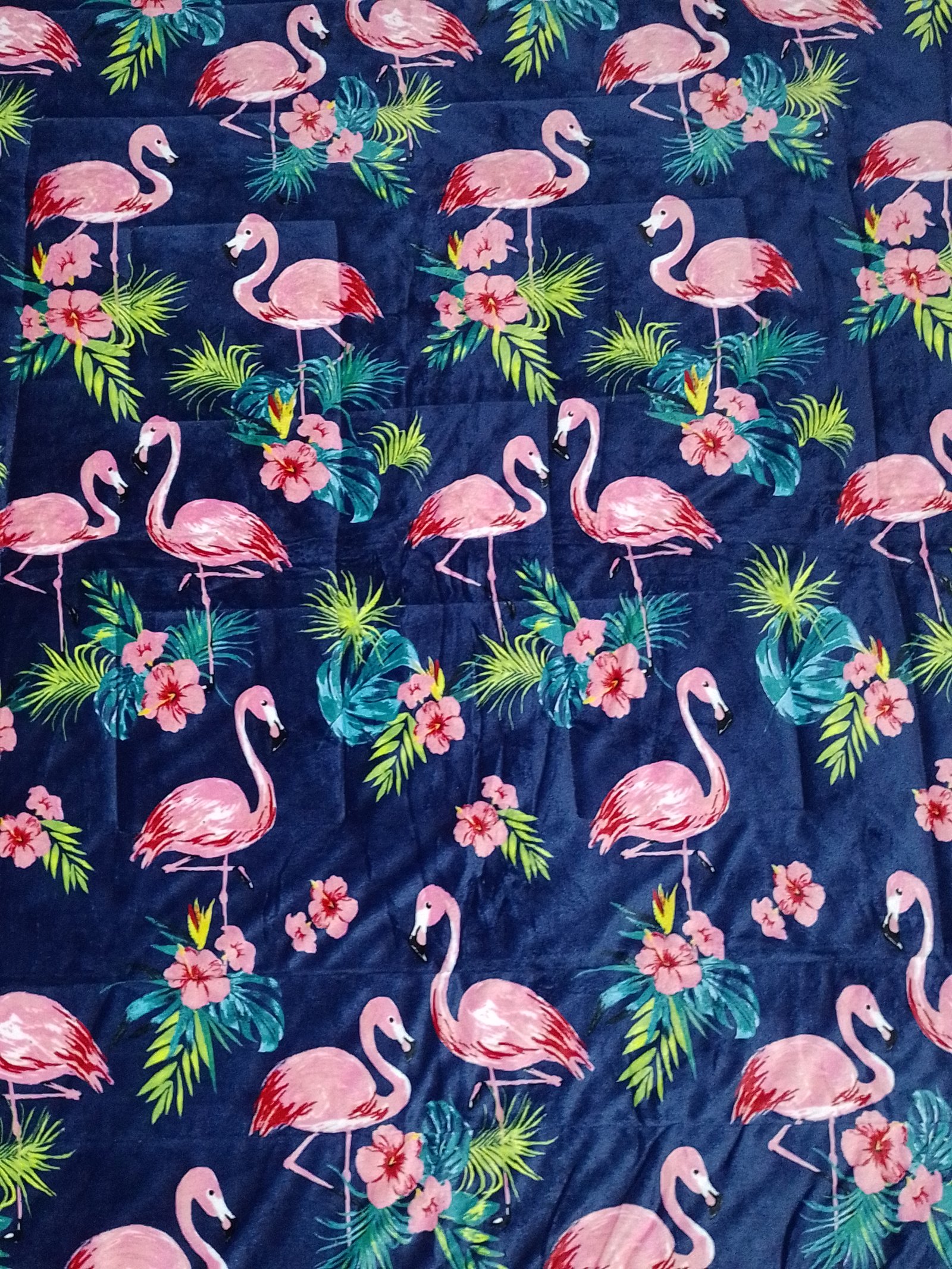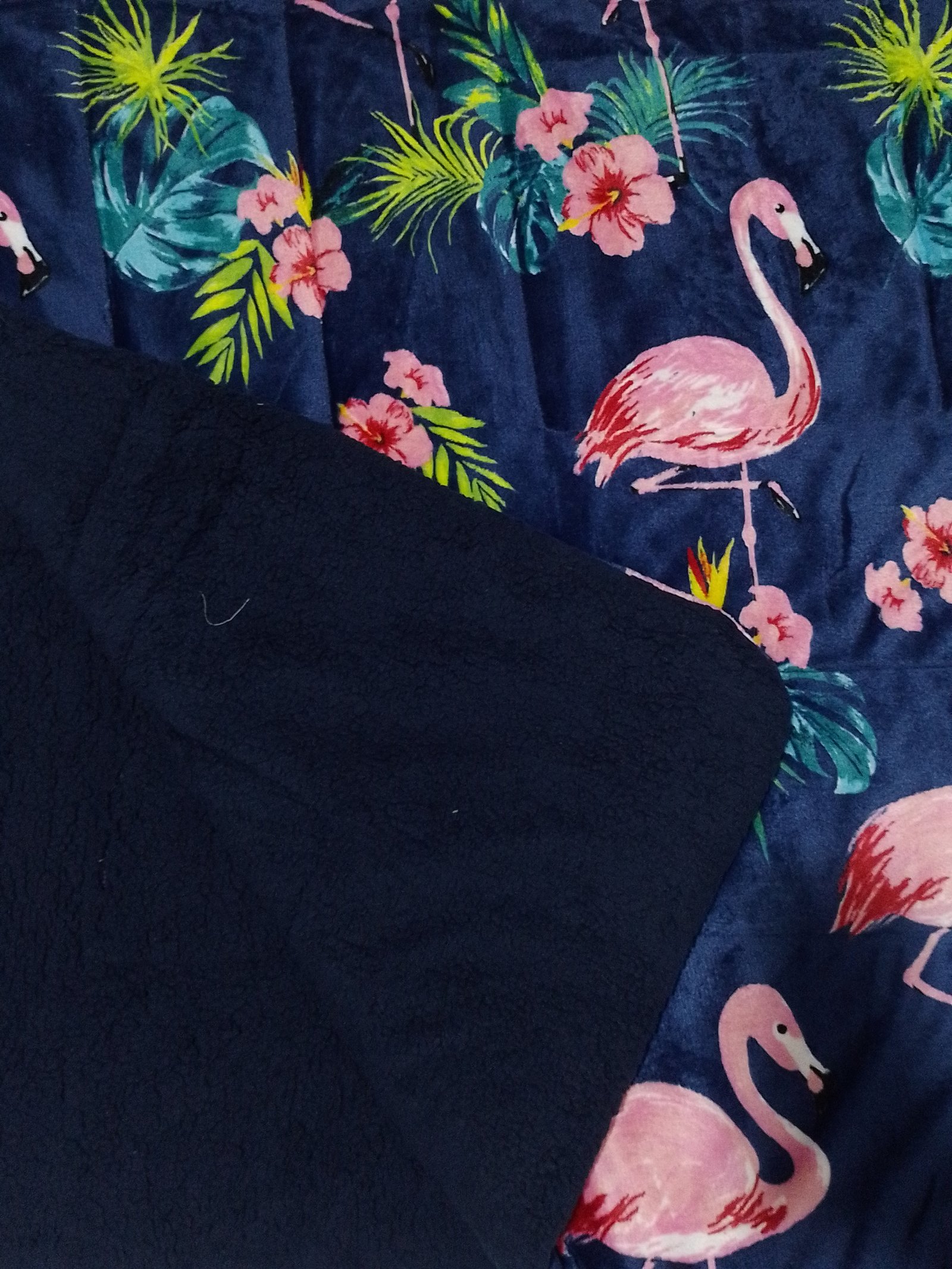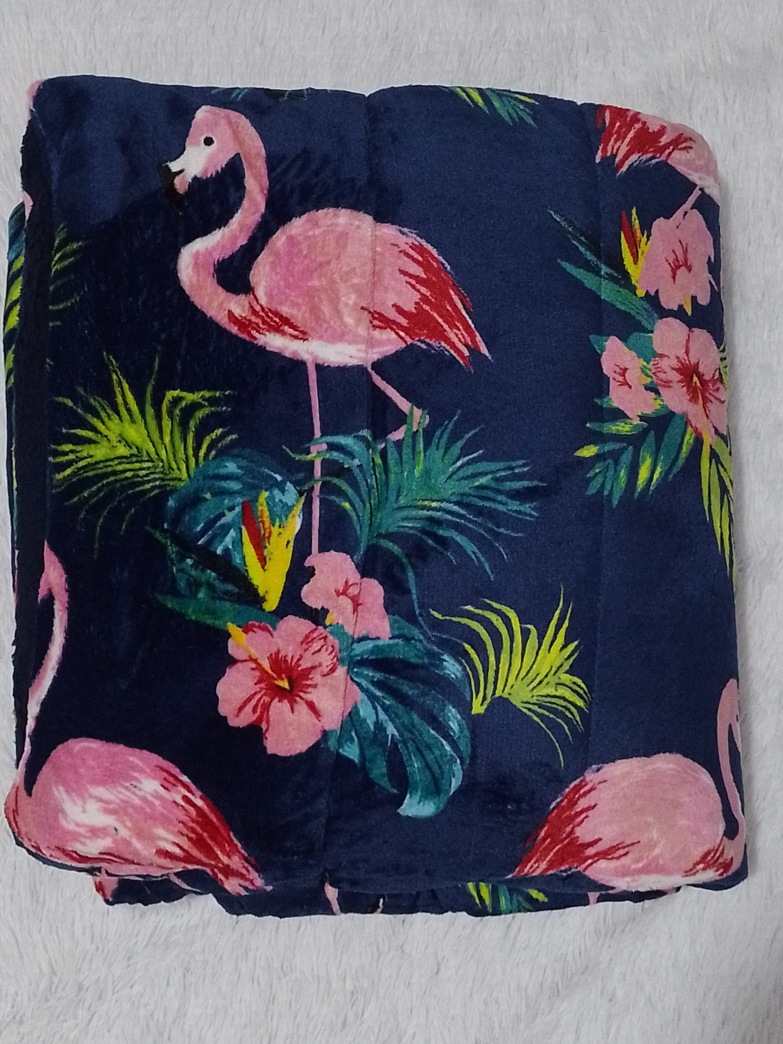 Edredón Tamaño Matrimonial color Azul con diseño de Flamingos, espersor de 2.5cm. No incluye Fundas