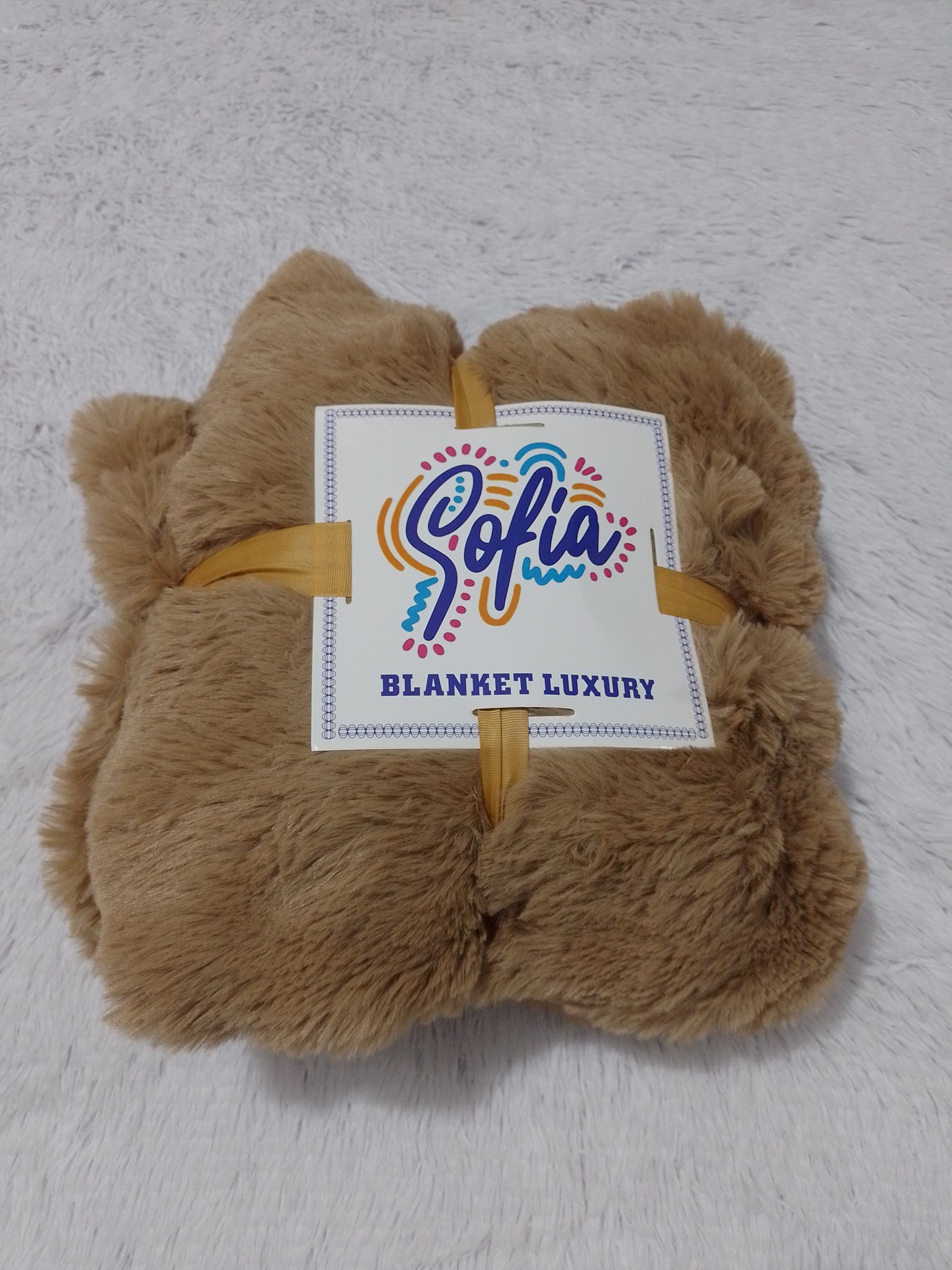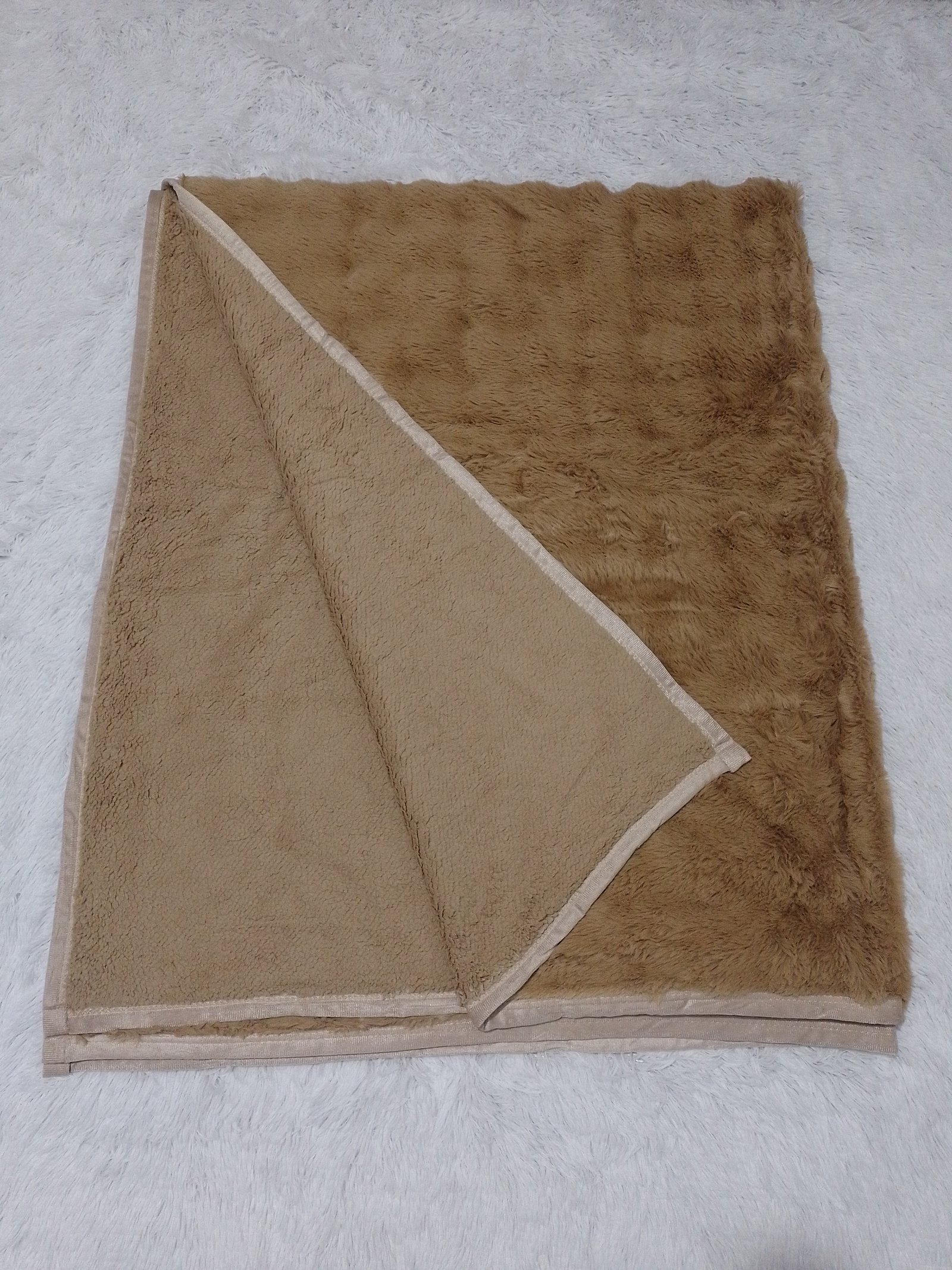 Ponchito tamaño Matrimonial de Peluche con borrego, color Café Claro, Marca Sofía de la línea Blanket Luxury Medidas: 200cm X 200cms