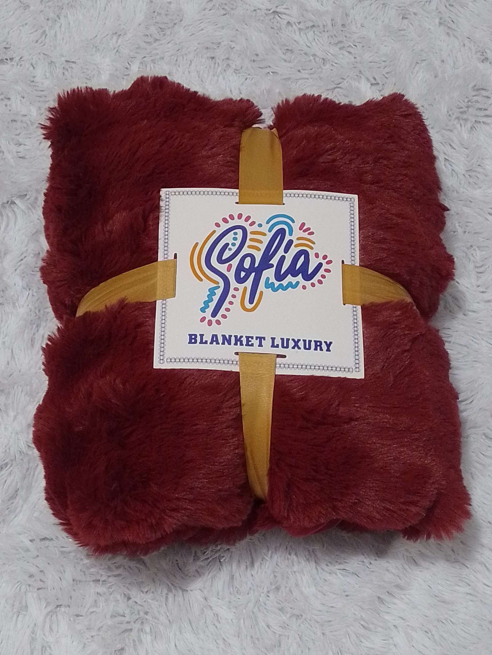 Ponchito tamaño Matrimonial de Peluche con borrego, color Corinto, Marca Sofía de la línea Blanket Luxury Medidas: 200cm X 200cms