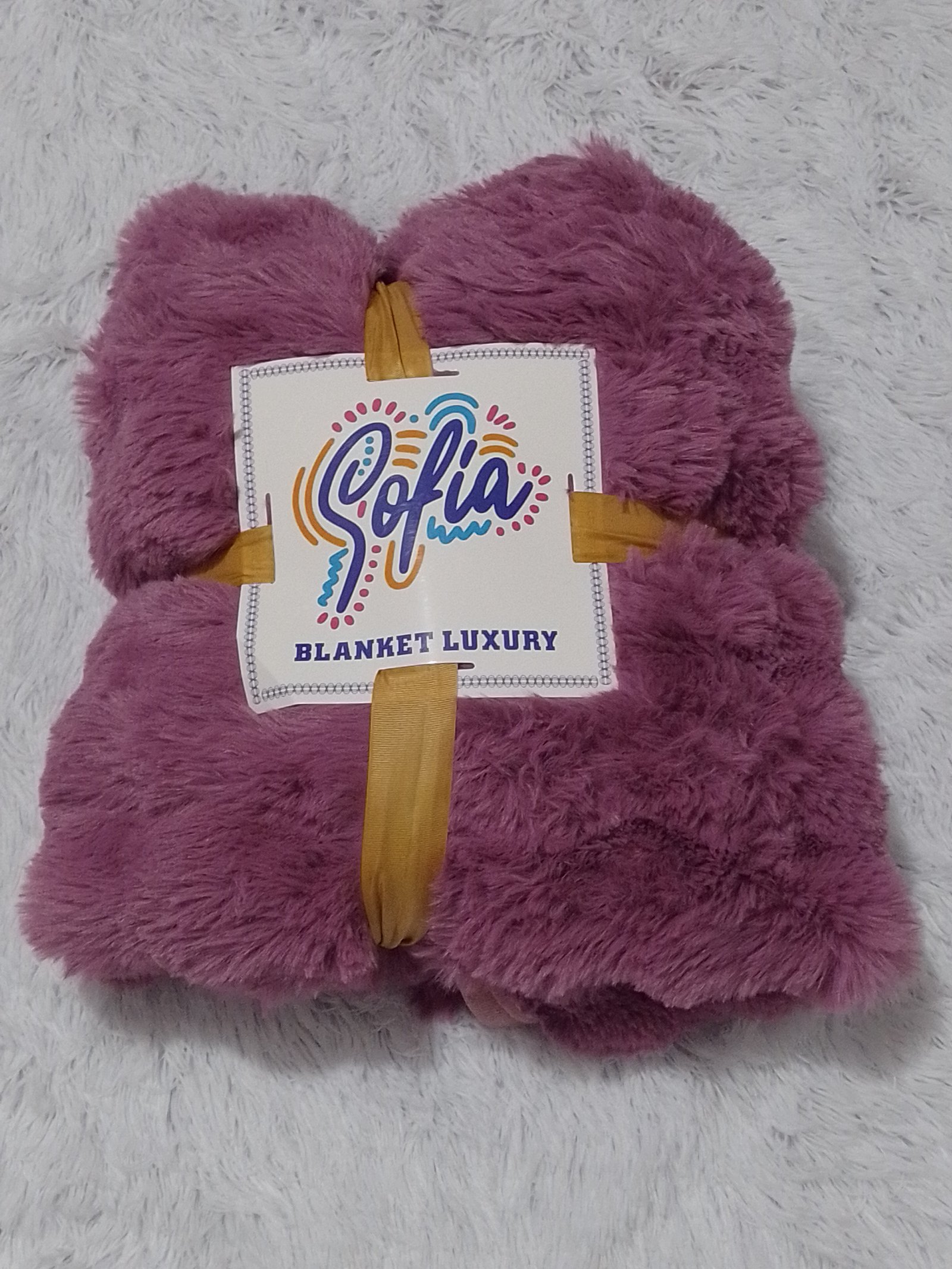Ponchito tamaño Matrimonial de Peluche con borrego, color Lila, Marca Sofía de la línea Blanket Luxury Medidas: 200cm X 200cms