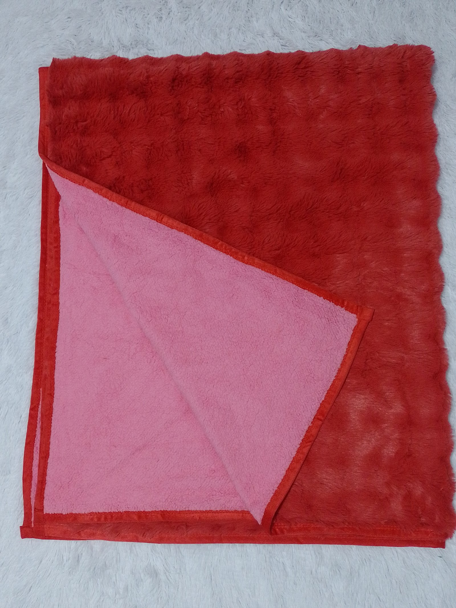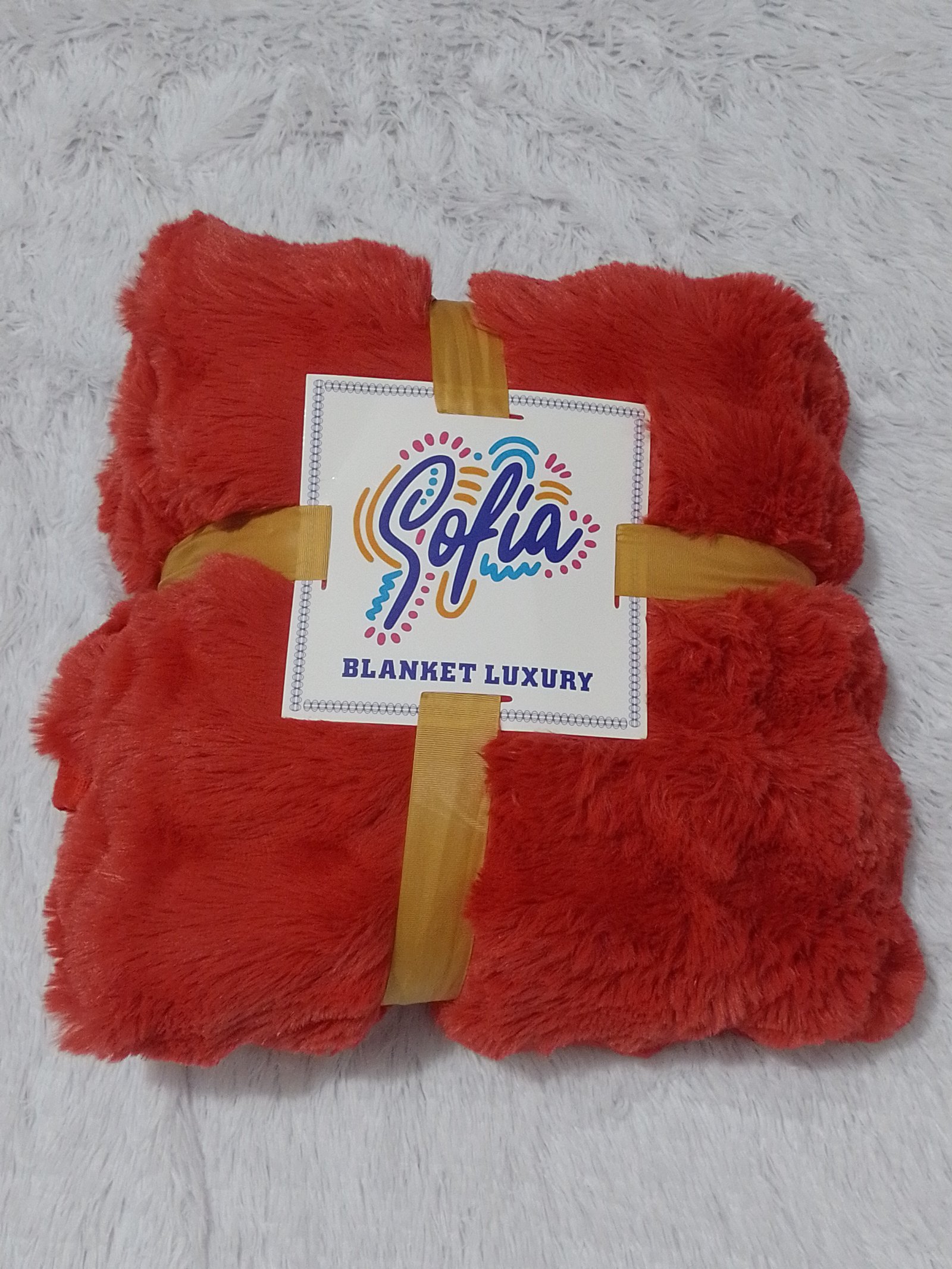Ponchito tamaño Matrimonial de Peluche con borrego, color rojo, Marca Sofía de la línea Blanket Luxury Medidas: 200cm X 200cms