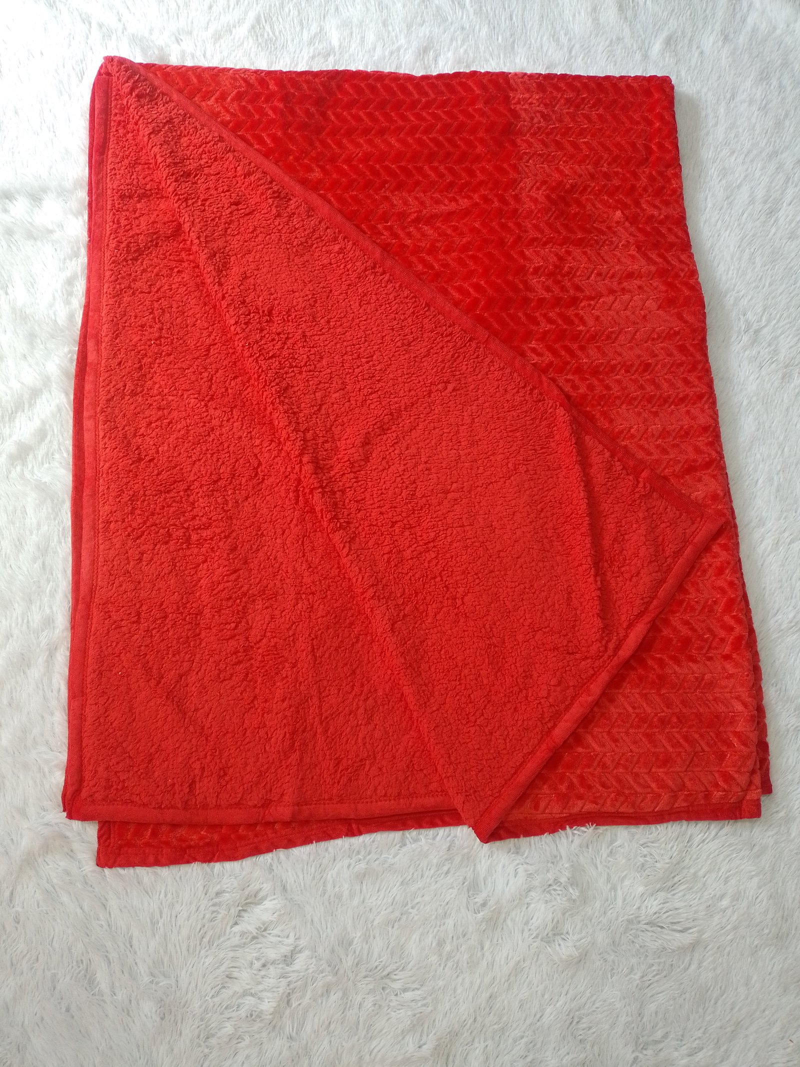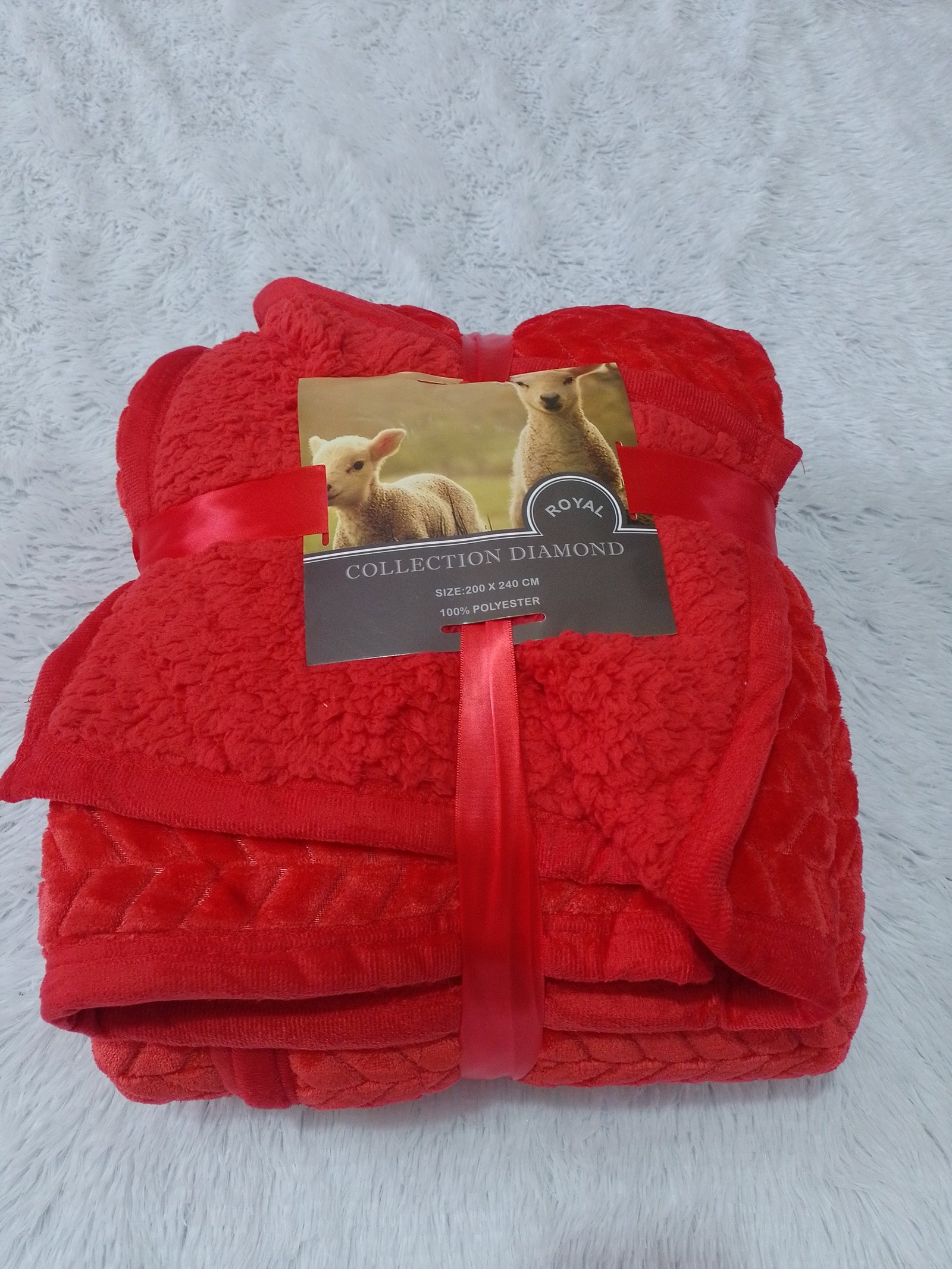 Ponchito tamaño Queen con borrego, en color rojo con relieve, Marca Royal de la Línea Collection Diamond Medidas: 200cm X 240cms
