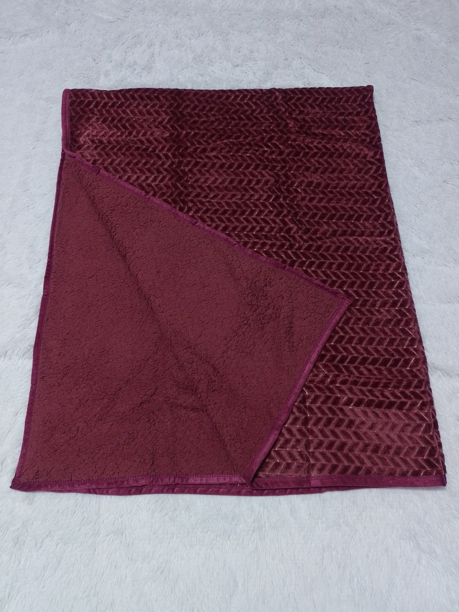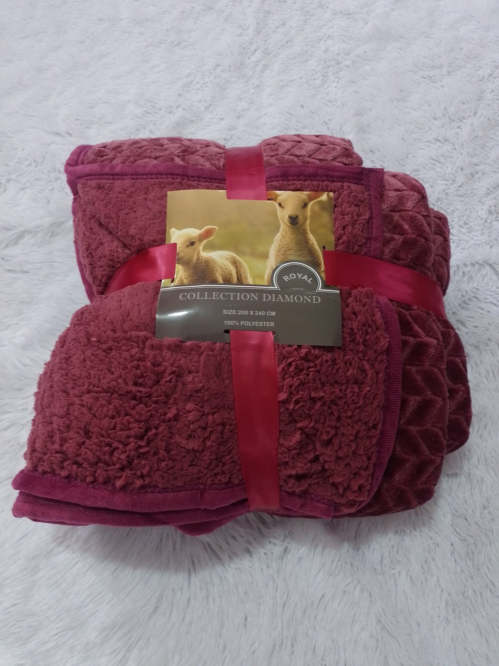 Ponchito tamaño Queen con borrego, en color uva con relieve, Marca Royal de la Línea Collection Diamond Medidas: 200cm X 240cms