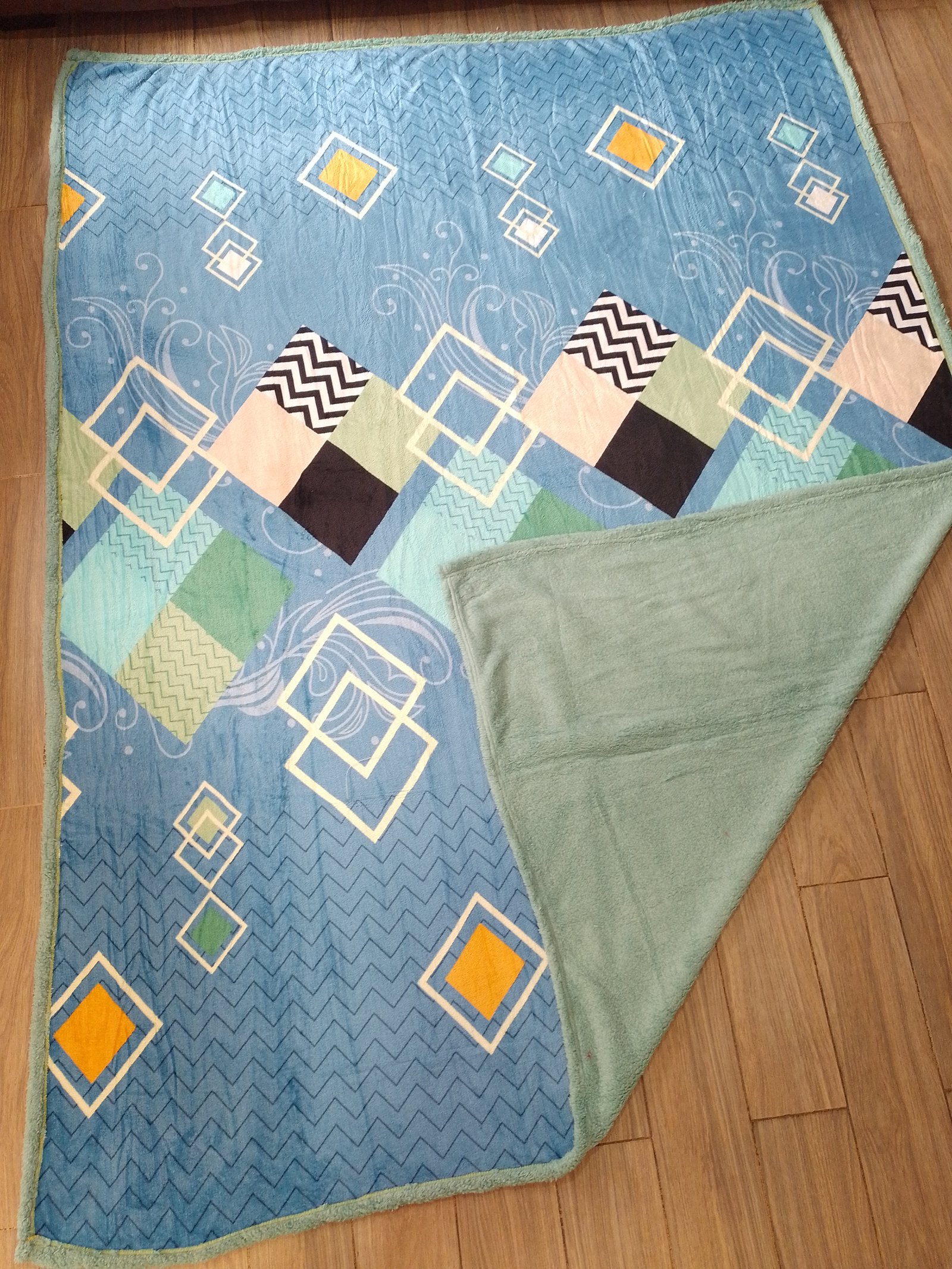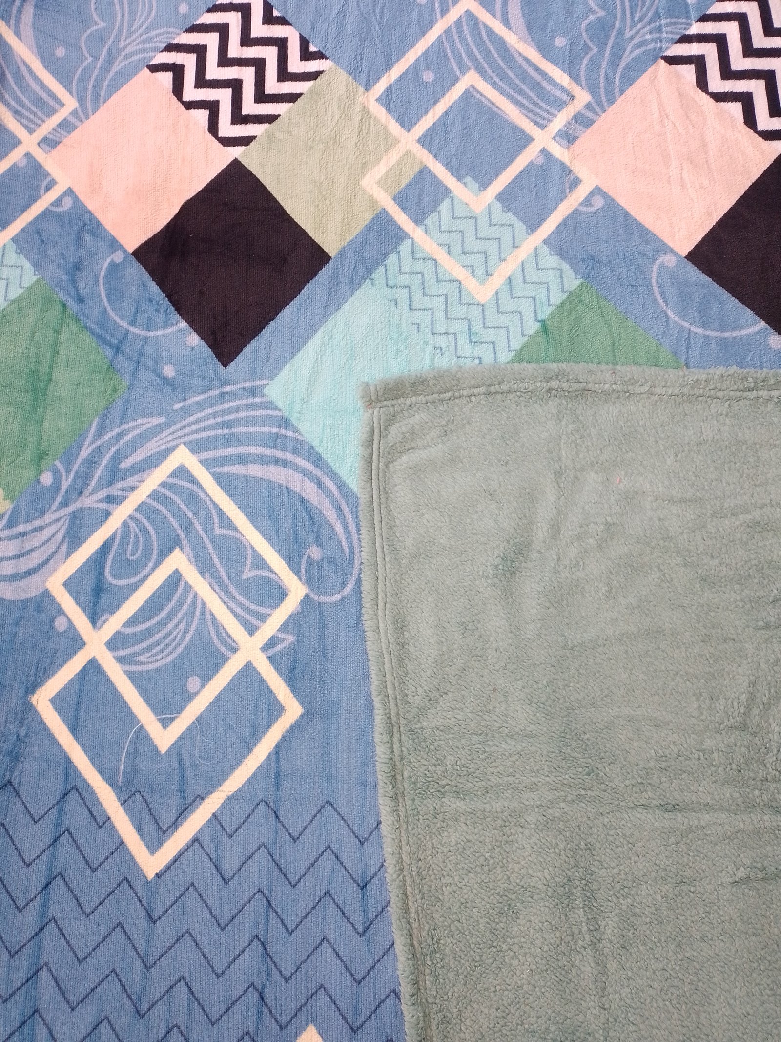 Ponchito tamaño matrimonial con borrego, color turquesa, rombos de diferentes tamaños