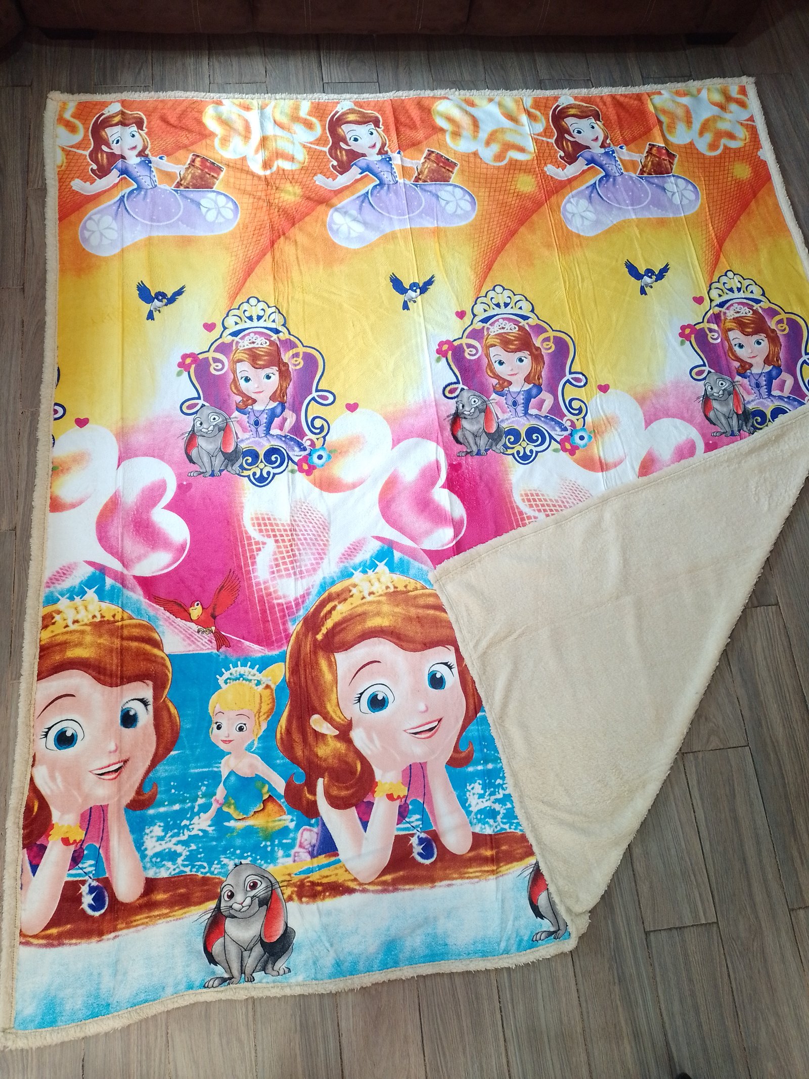 Ponchito tamaño matrimonial con borrego, diseño de la Princesa Sofía