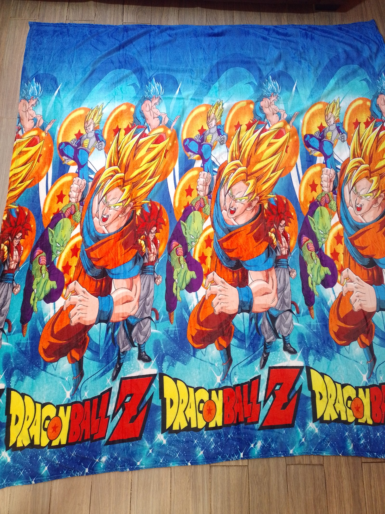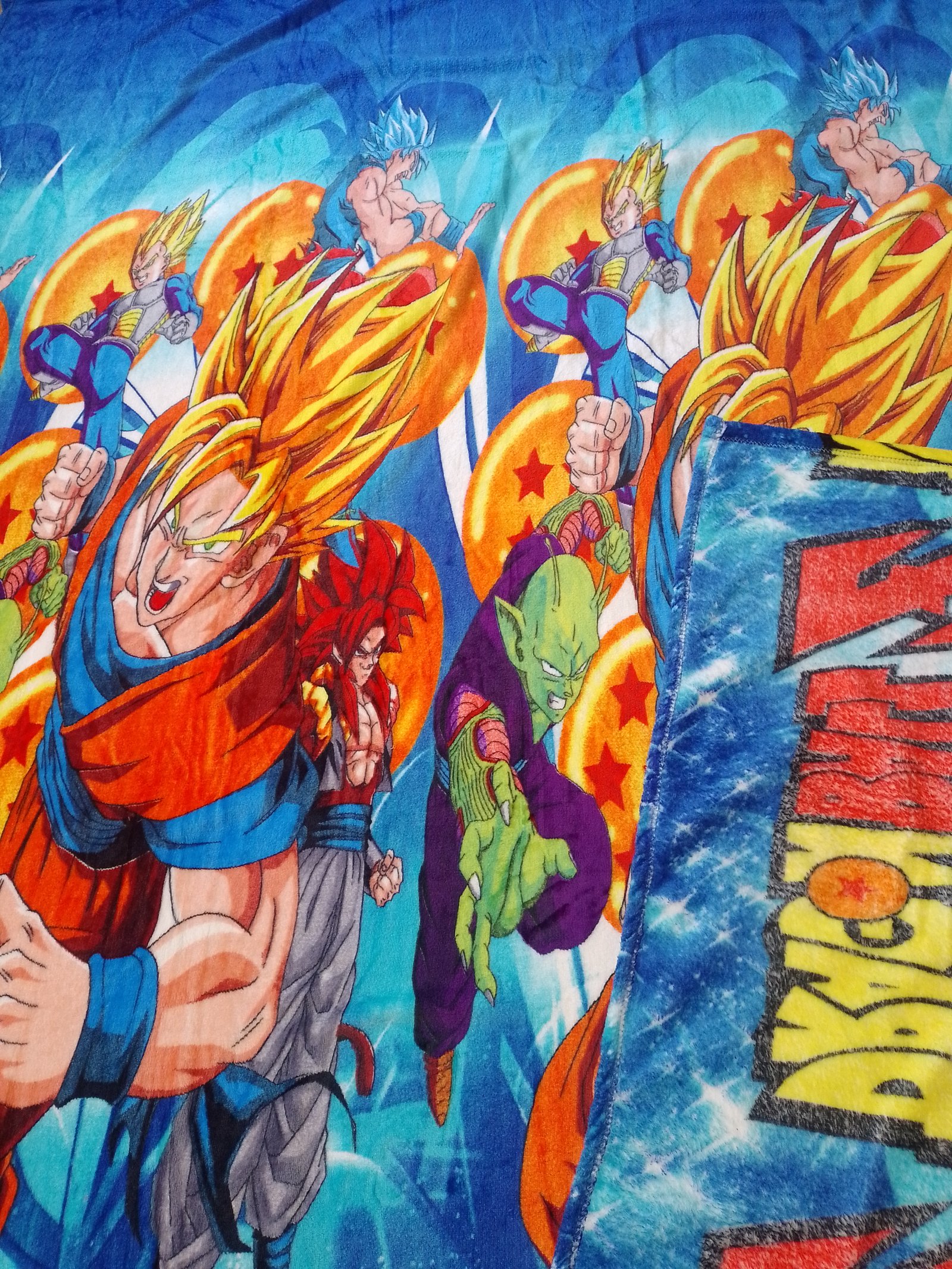 Ponchito Tamaño Matrimonial Sin Borrego, Tela Coral con Diseño de Dragon Ball Z