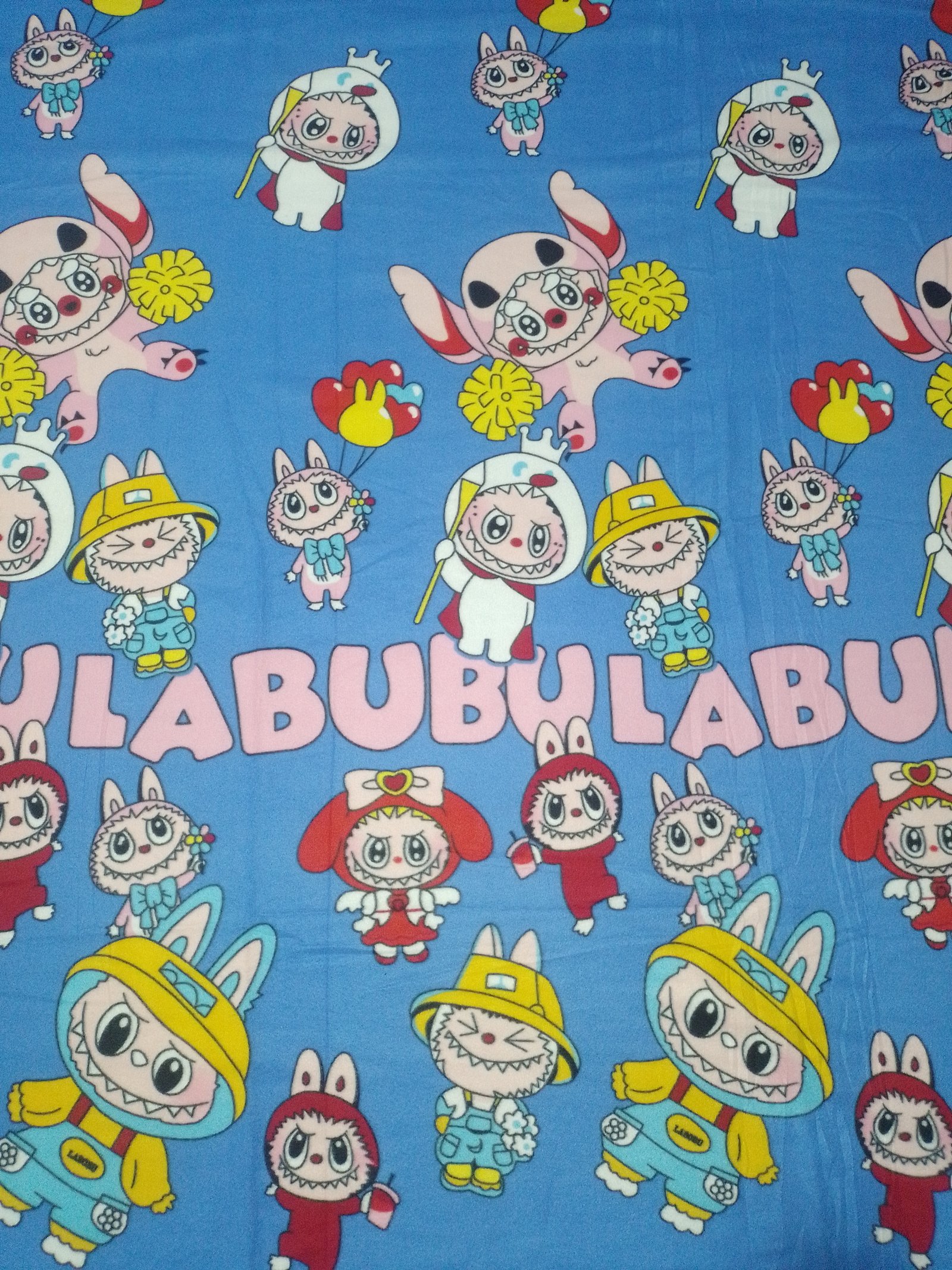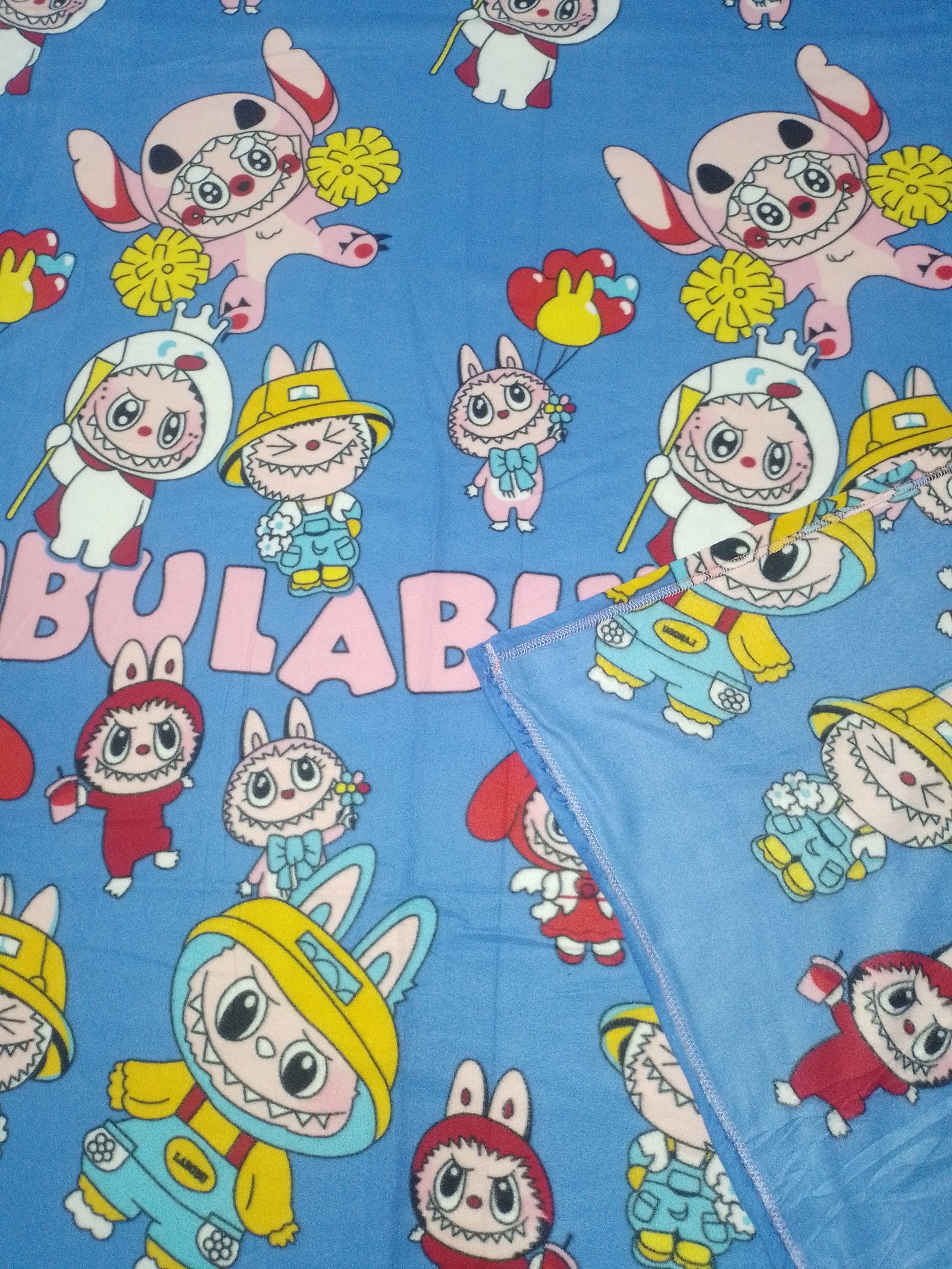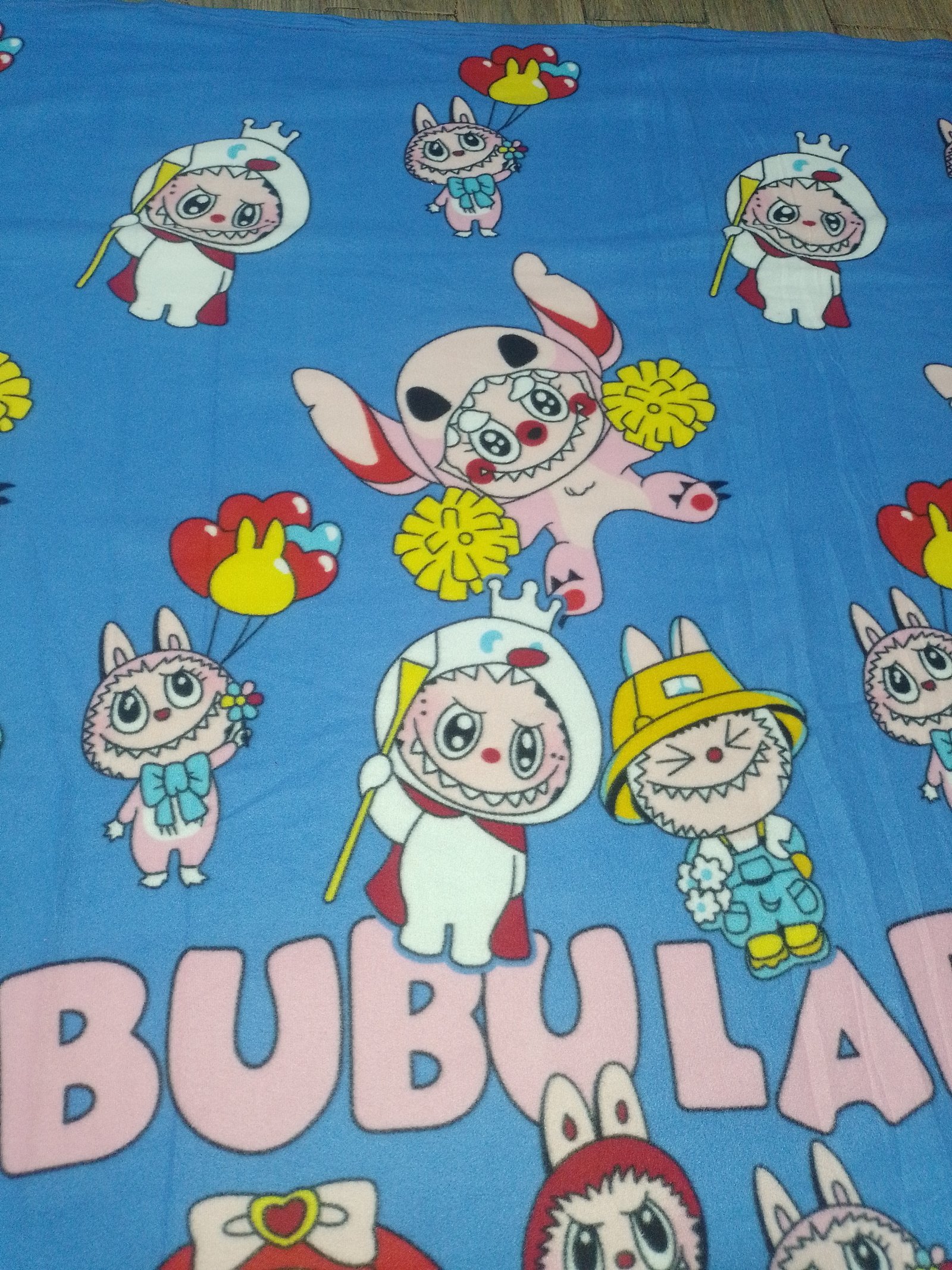 Ponchito Tamaño Matrimonial sin borrego Tela Franela, con diseño de Labubu