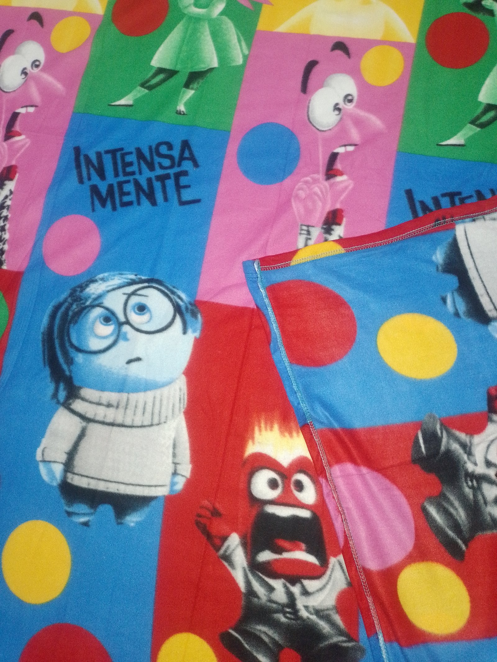 Ponchito Tamaño Matrimonial sin borrego Tela Franela, con diseño de los Personajes de Intensamente