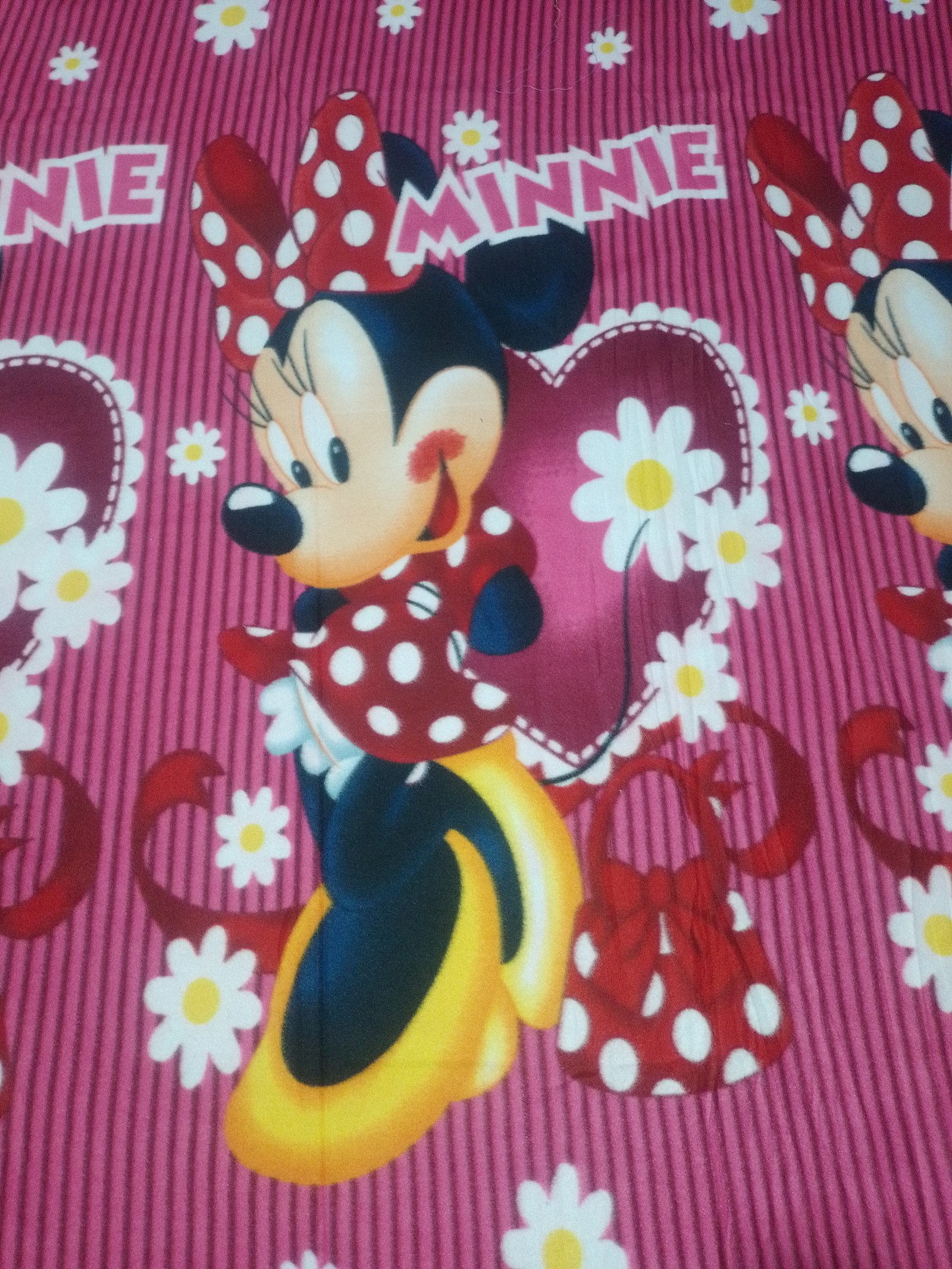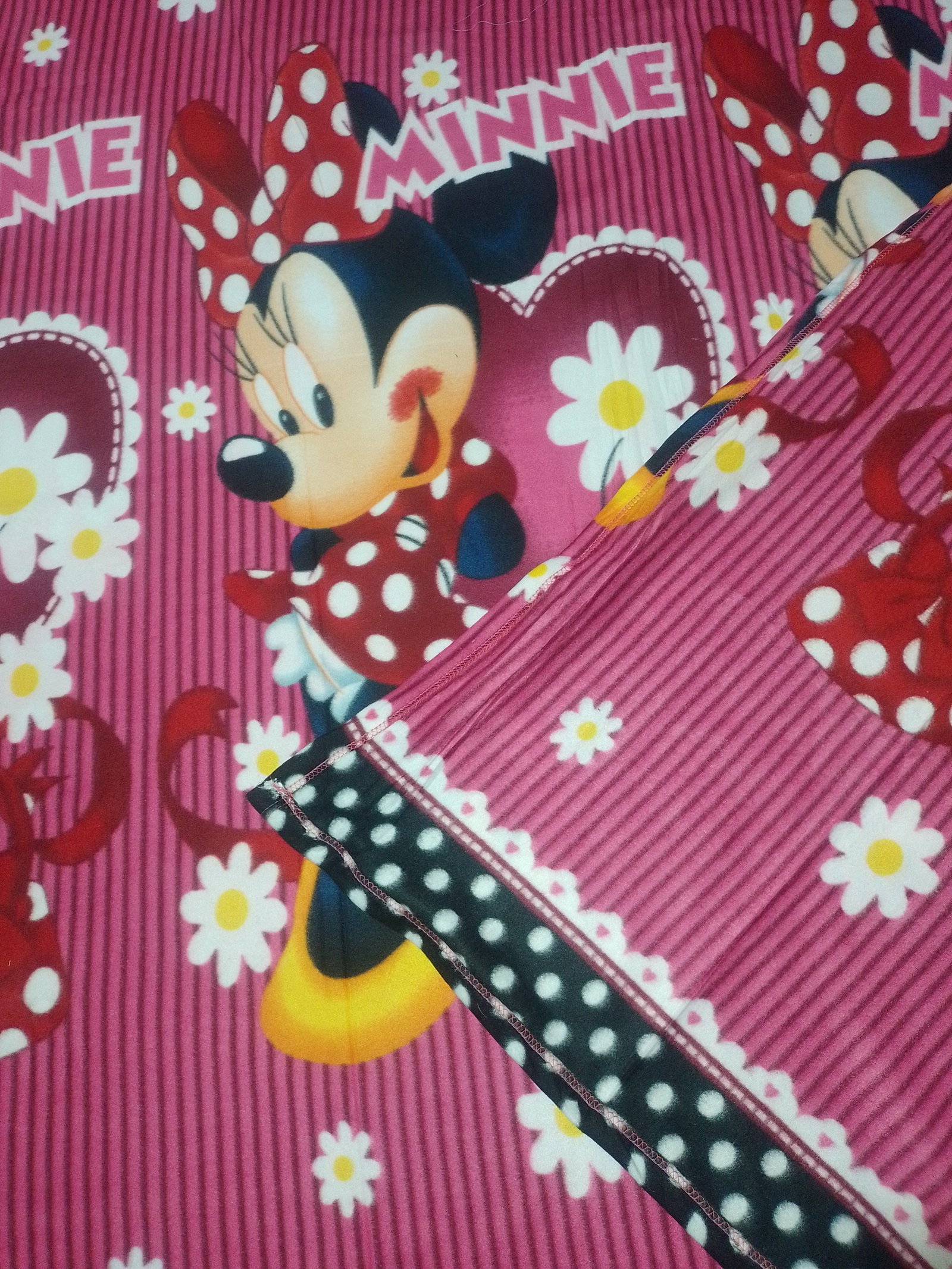 Ponchito Tamaño Matrimonial sin borrego Tela Franela, con diseño de Minnie, fondo Rosado