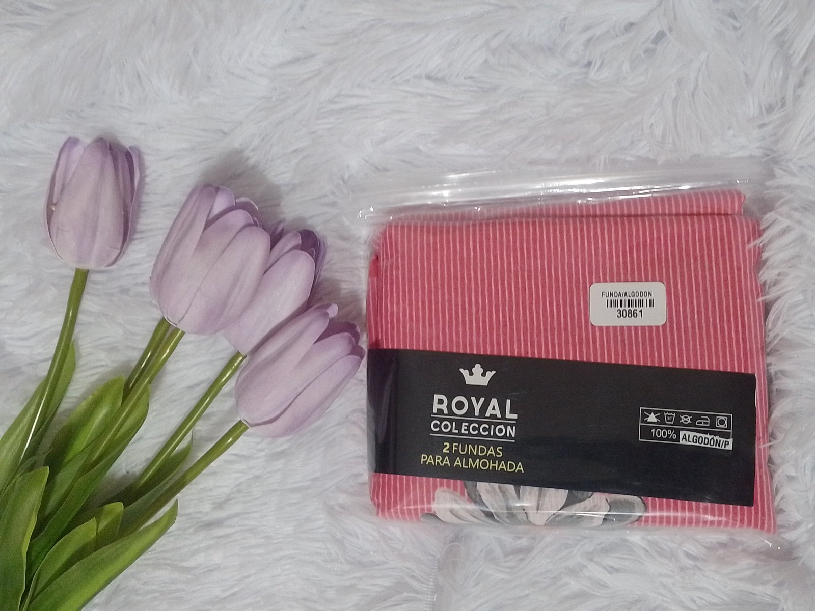 Set de Dos Fundas de Algodón Color Rosado con líneas Blancas y Flores