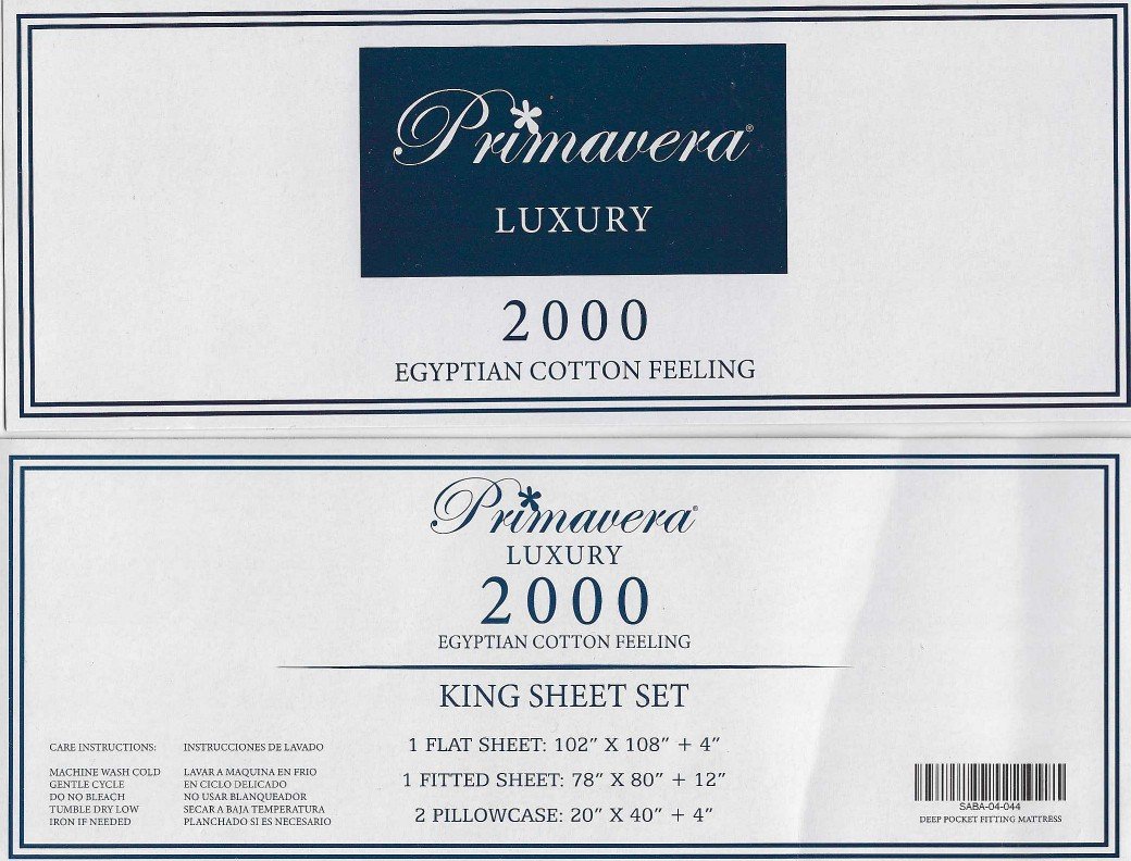 Set de Sábanas de 2000 Hilos de Algodón Egipsio Marca Primavera de la Linea Luxury, Incluye un Cobertor de Colchón con Elástico, Una Sábana con una orilla bordada y dos fundas para Almohada con Orilla Bordada (El bordado puede variar de la imagen)