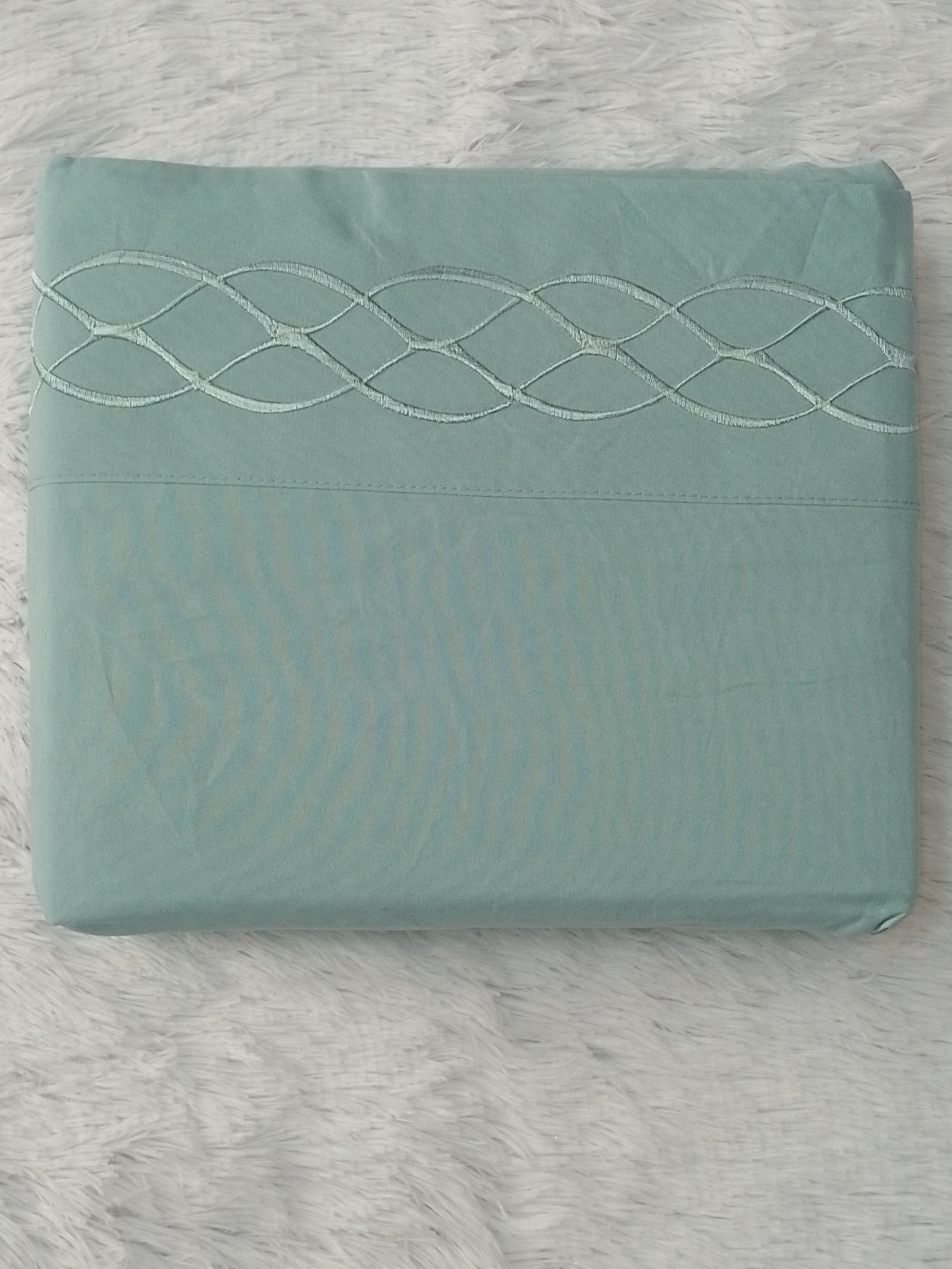 Set de Sábanas tamaño Matrimonial color Celeste, con detalle bordado