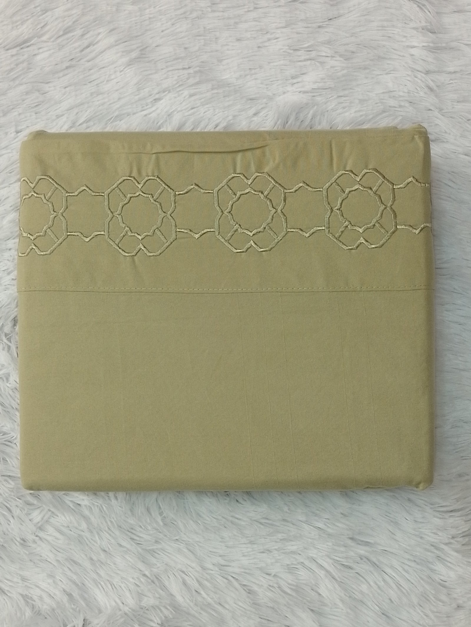 Set de Sábanas tamaño Matrimonial color Verde Olivo, con detalle bordado