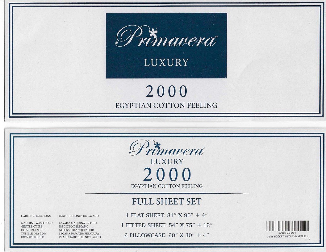 Set de Sábanas de 2000 Hilos de Algodón Egipcio Marca Primavera de la Linea Luxury, Incluye un Cobertor de Colchón con Elástico, Una Sábana con una orilla bordada y dos fundas para Almohada con Orilla Bordada (El detalle del bordado puede variar con respecto a la imagen)