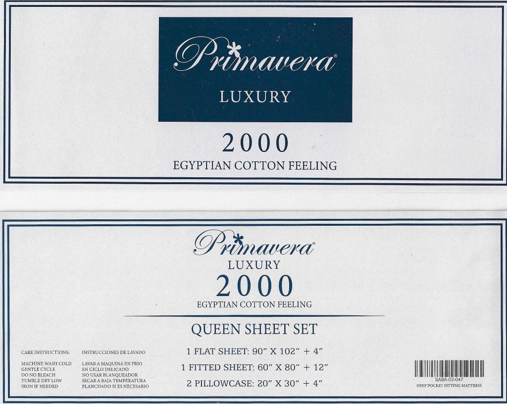 Set de Sábanas de 2000 Hilos de Algodón Egipsio Marca Primavera de la Linea Luxury, Incluye un Cobertor de Colchón con Elástico, Una Sábana con una orilla bordada y dos fundas para Almohada con Orilla Bordada (El bordado puede variar de la imagen)
