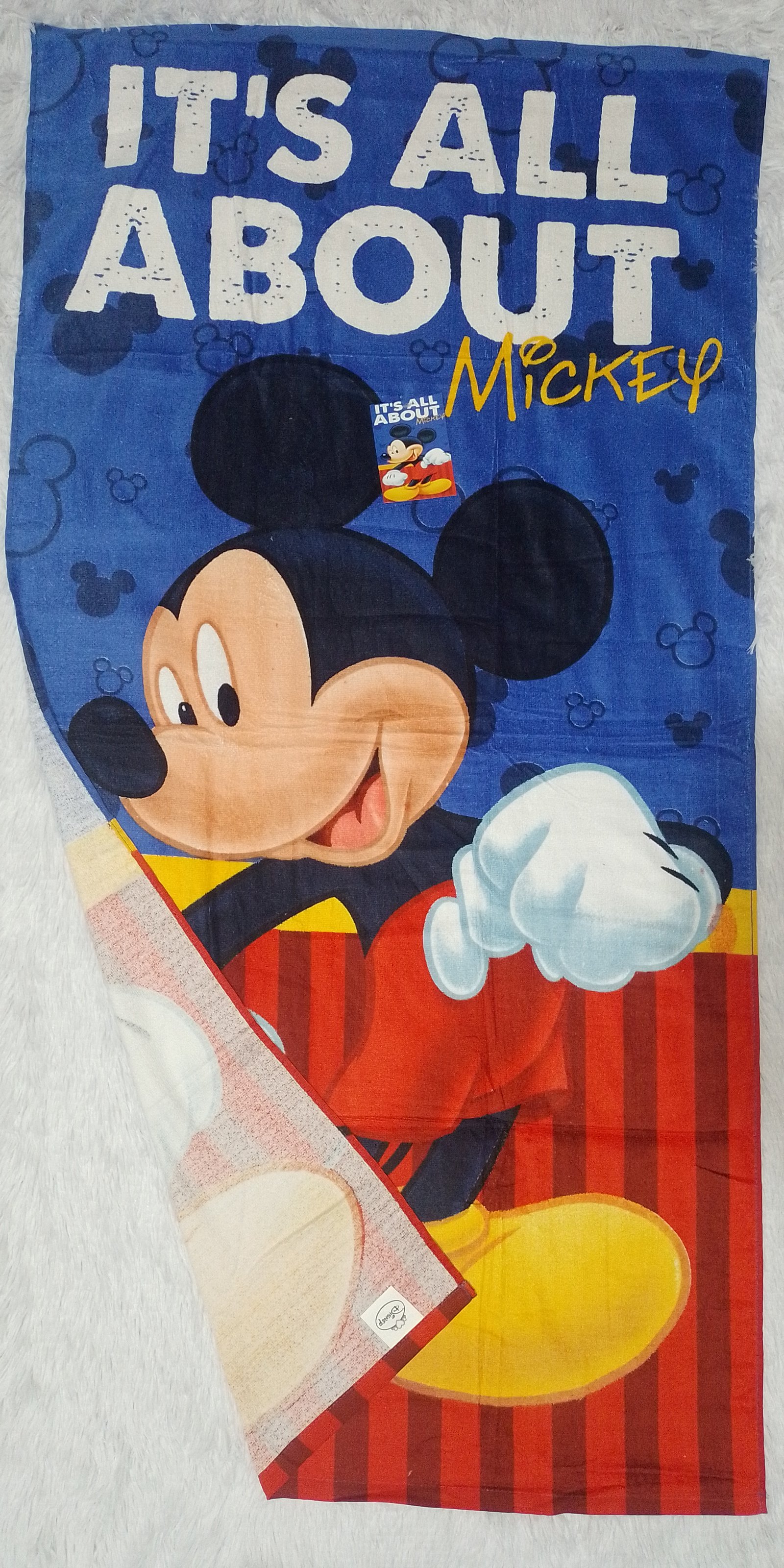 Toalla de Algodón, Marca Disney con personaje de Mikey, Medida de 140cm X 70cm