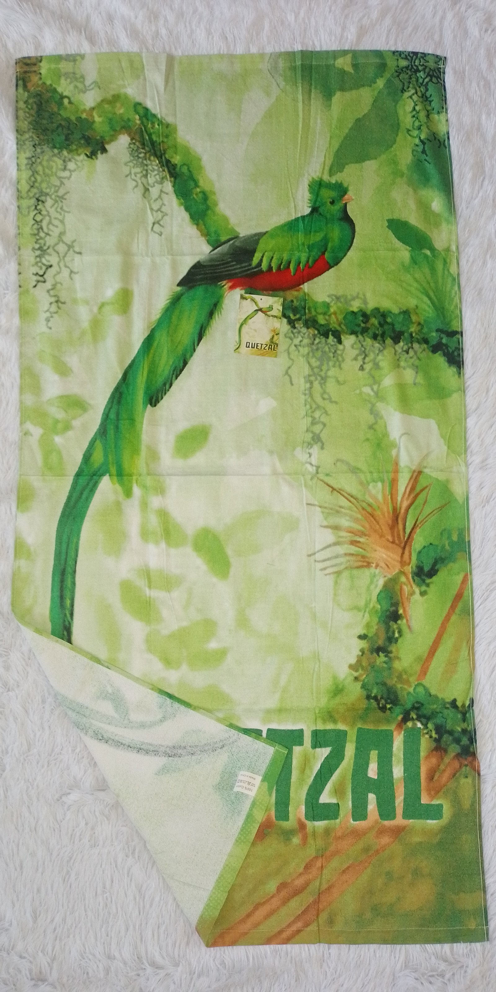 Toalla de algodón con figura del Quetzal de Guatemala Medidas de 140cm de largo y 70cm de ancho