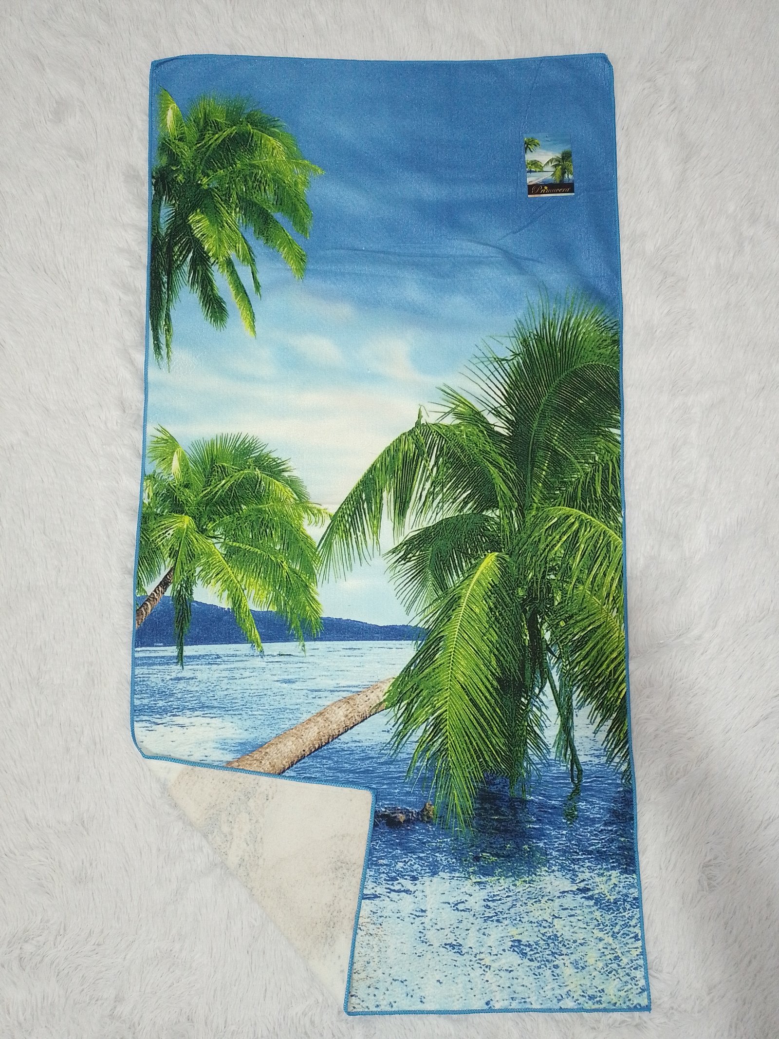 Toalla de microfibra con estampa de Playa y Palmeras Medidas de 140cm de largo y 70cm de ancho