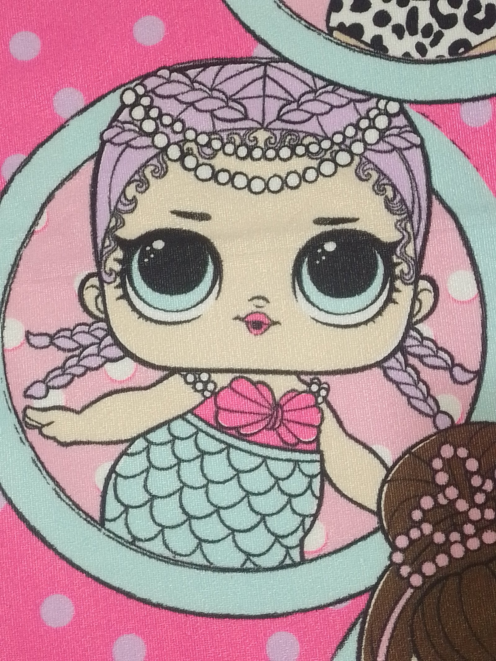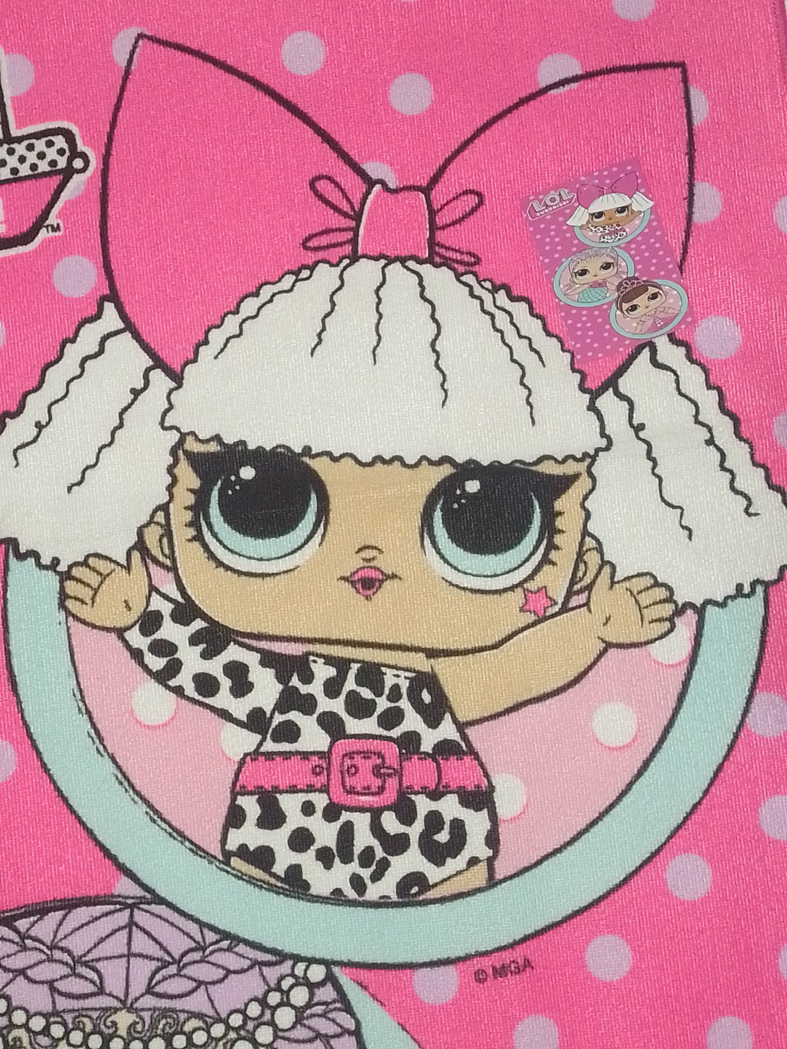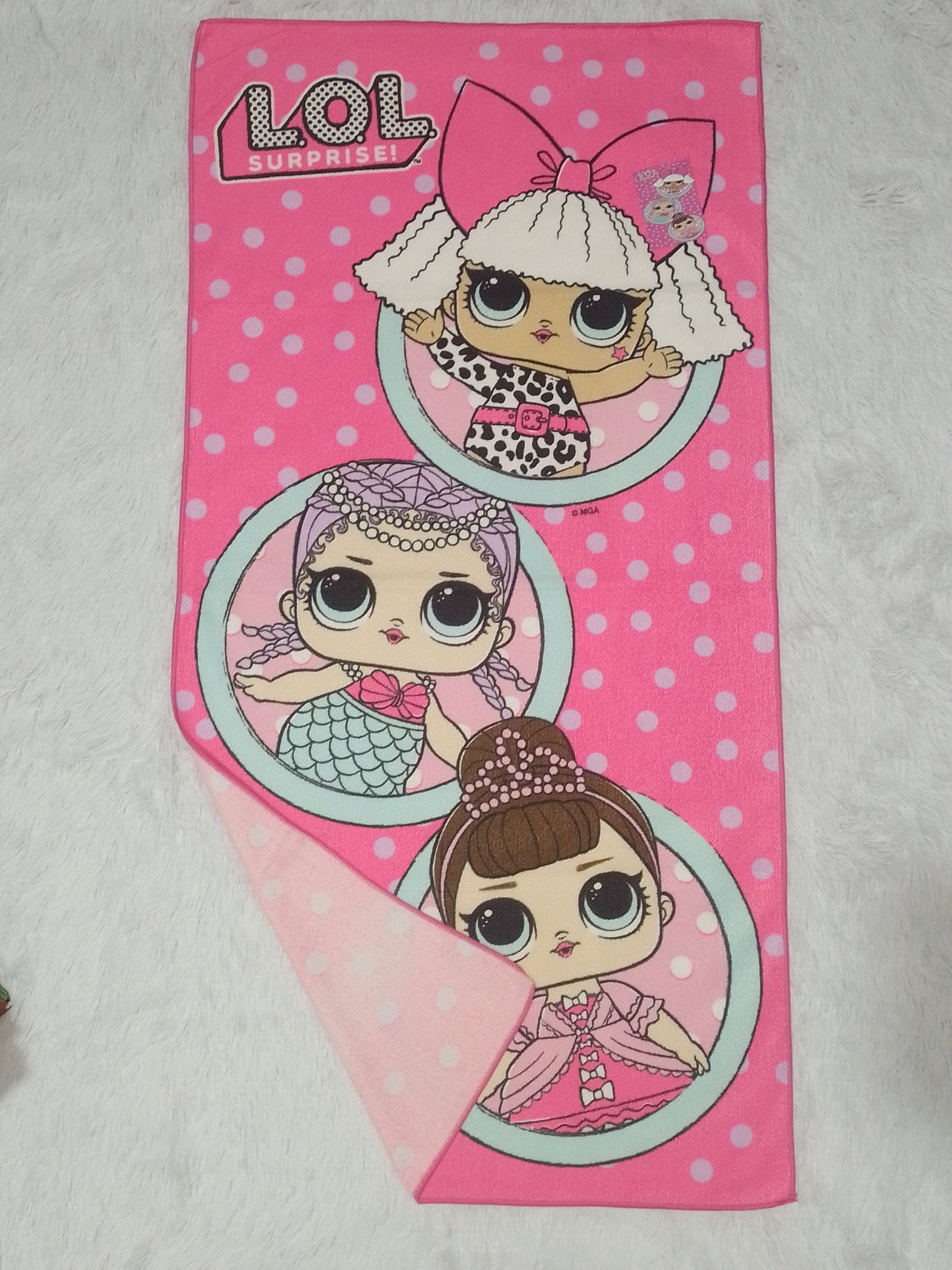 Toalla de microfibra para niñas con personaje de LOL, con fondo rosado Medidas de 140cm de largo y 70cm de ancho