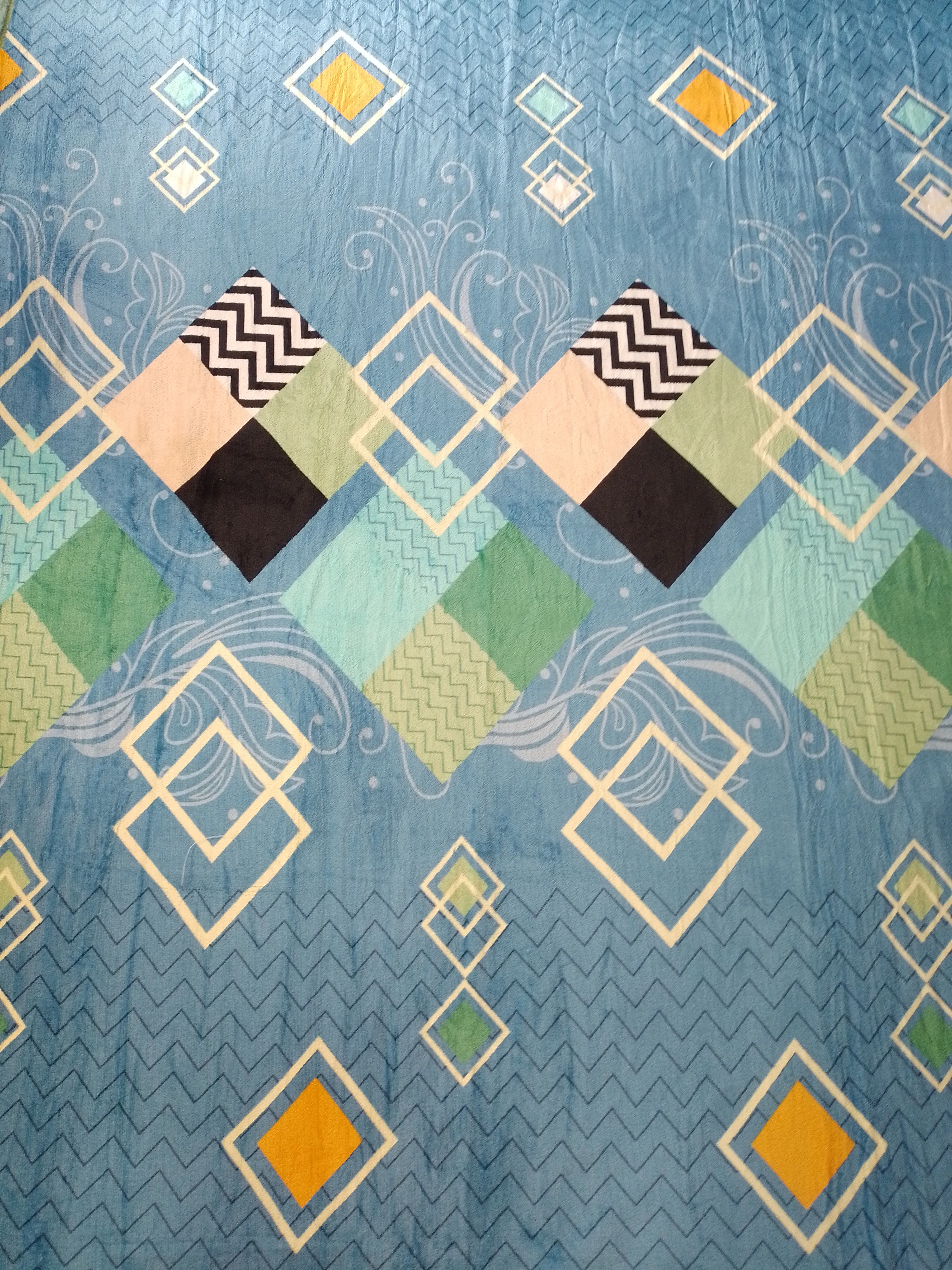Ponchito tamaño matrimonial con borrego, color turquesa, rombos de diferentes tamaños