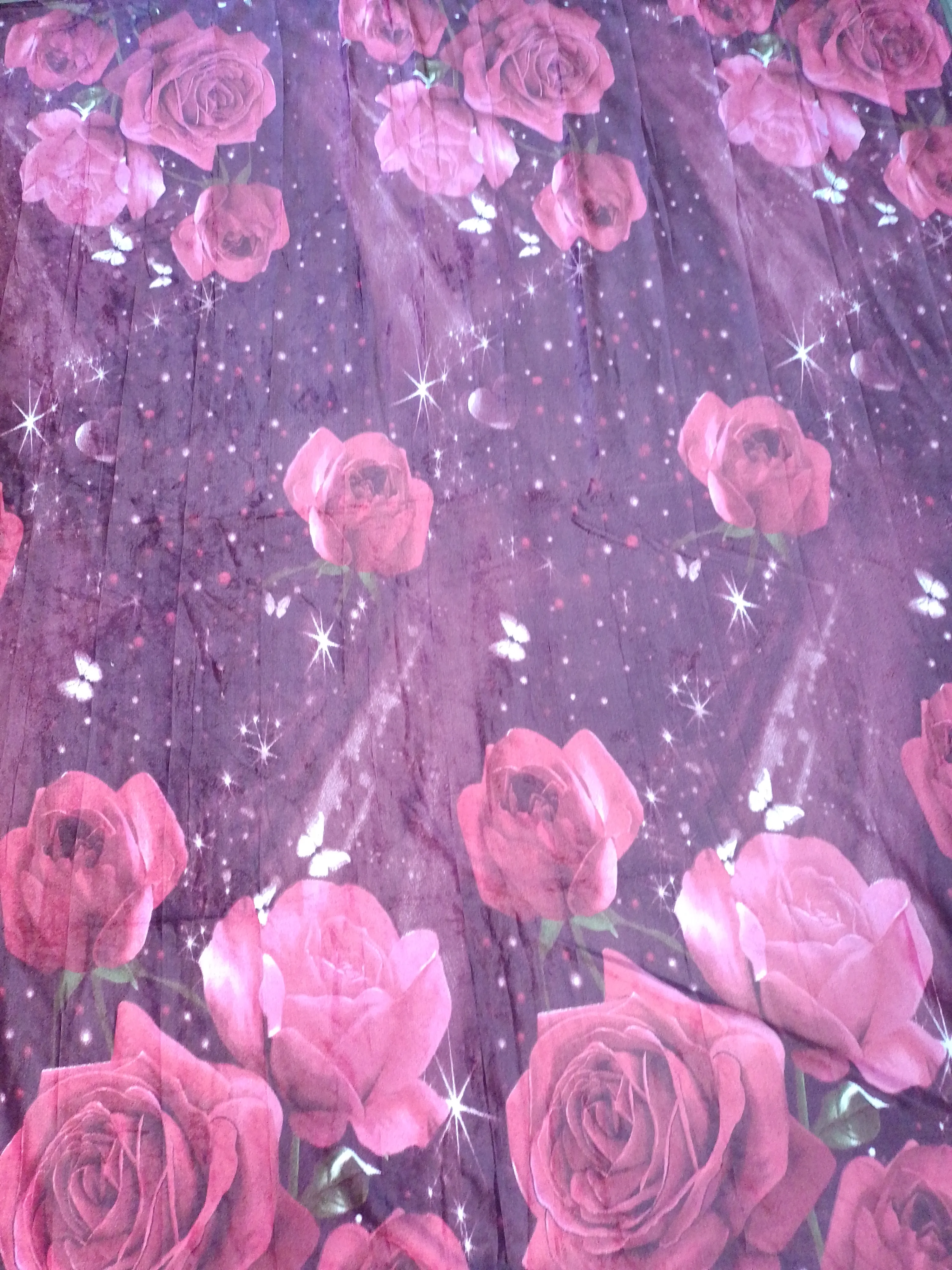 Ponchito tamaño matrimonial con borrego, color morado, diseño de rosas rosadas