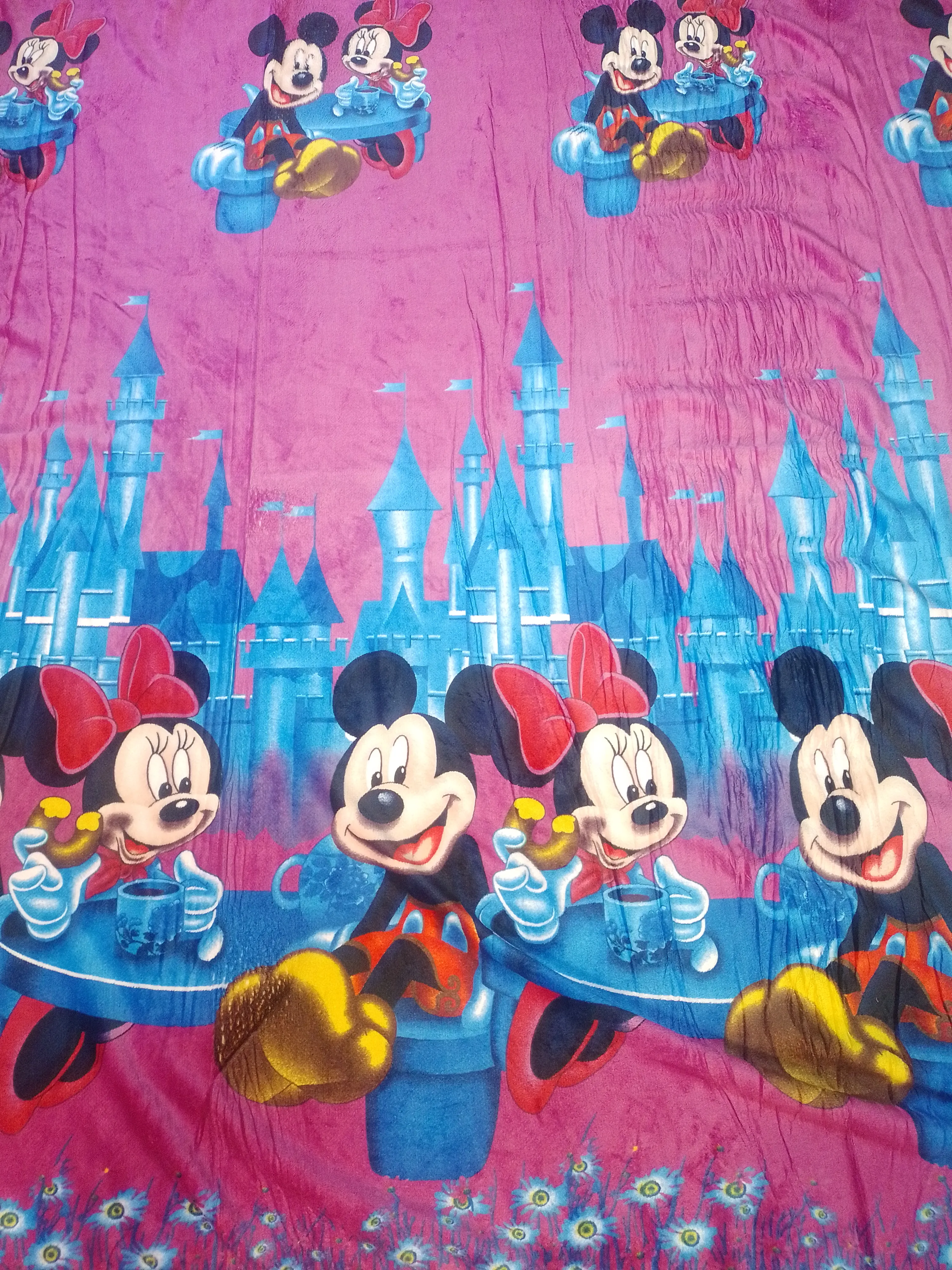 Ponchito tamaño matrimonial con borrego, diseño de Minnie y Mickey, con fondo color rosado