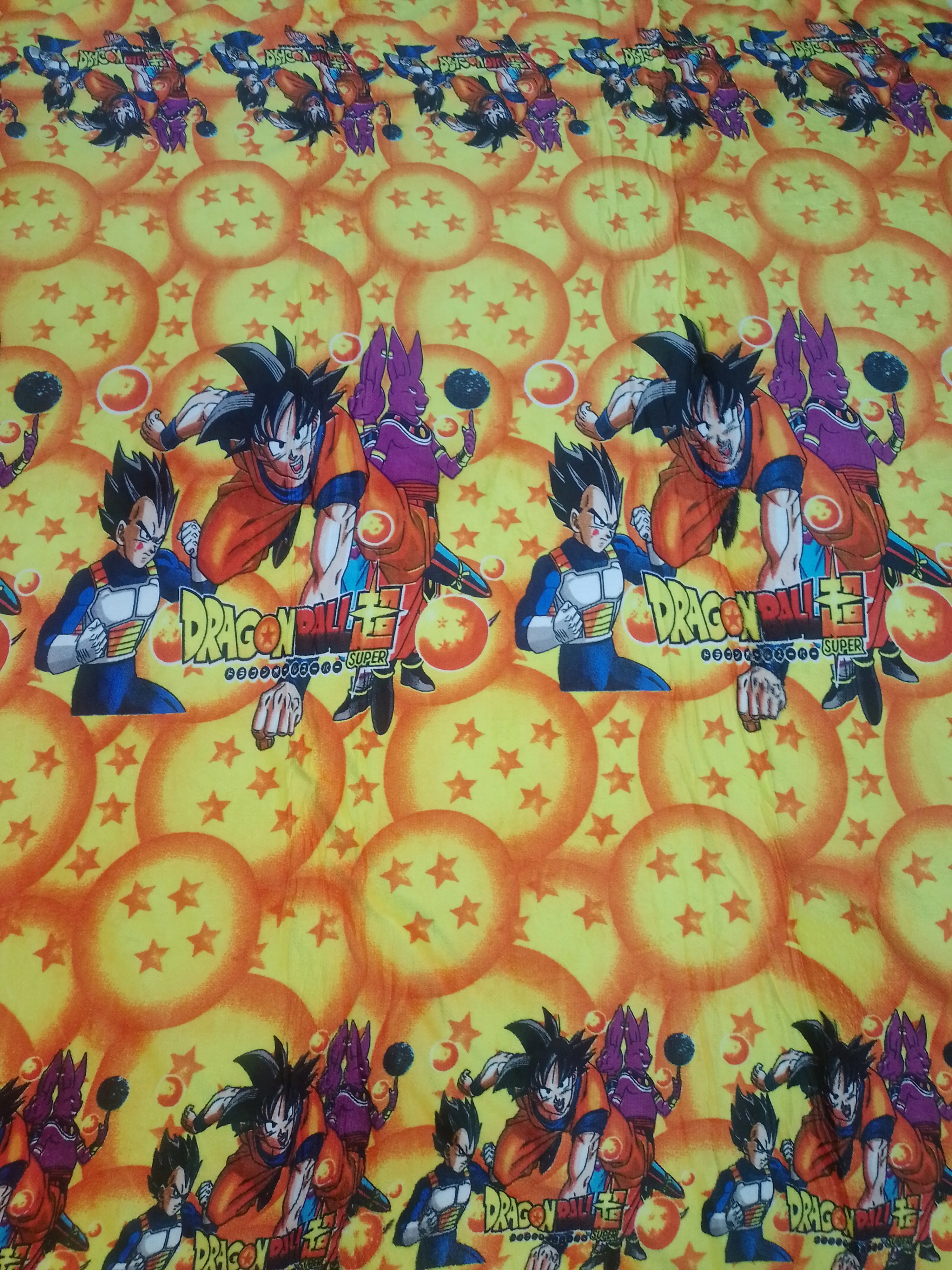 Ponchito tamaño matrimonial con borrego, diseño de Dragon Ball Super, fondo las Esferas del Dragon