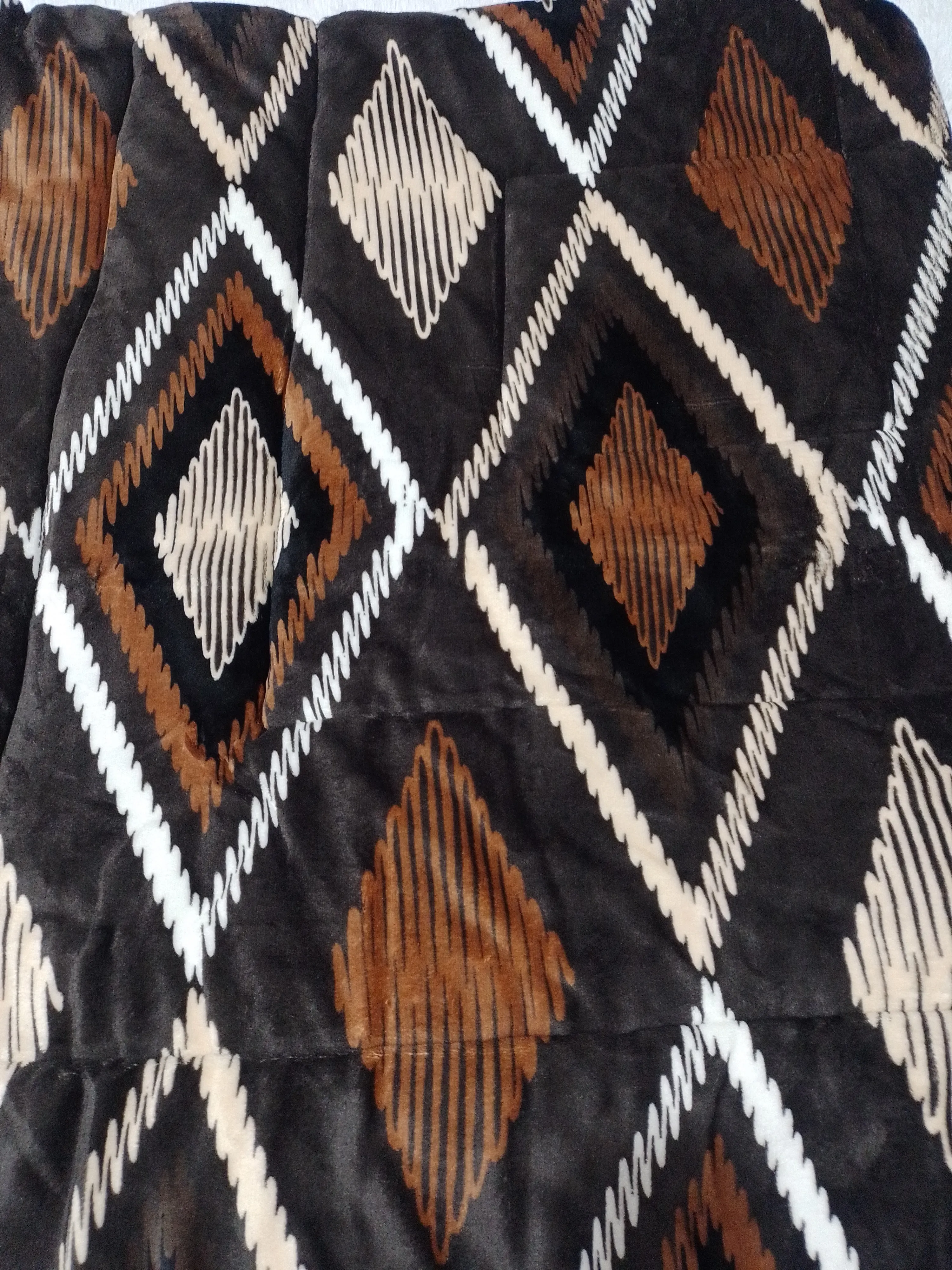 Edredón tamaño matrimonial color café de rombos, tiene un espesor de 2.5cm. No incluye fundas