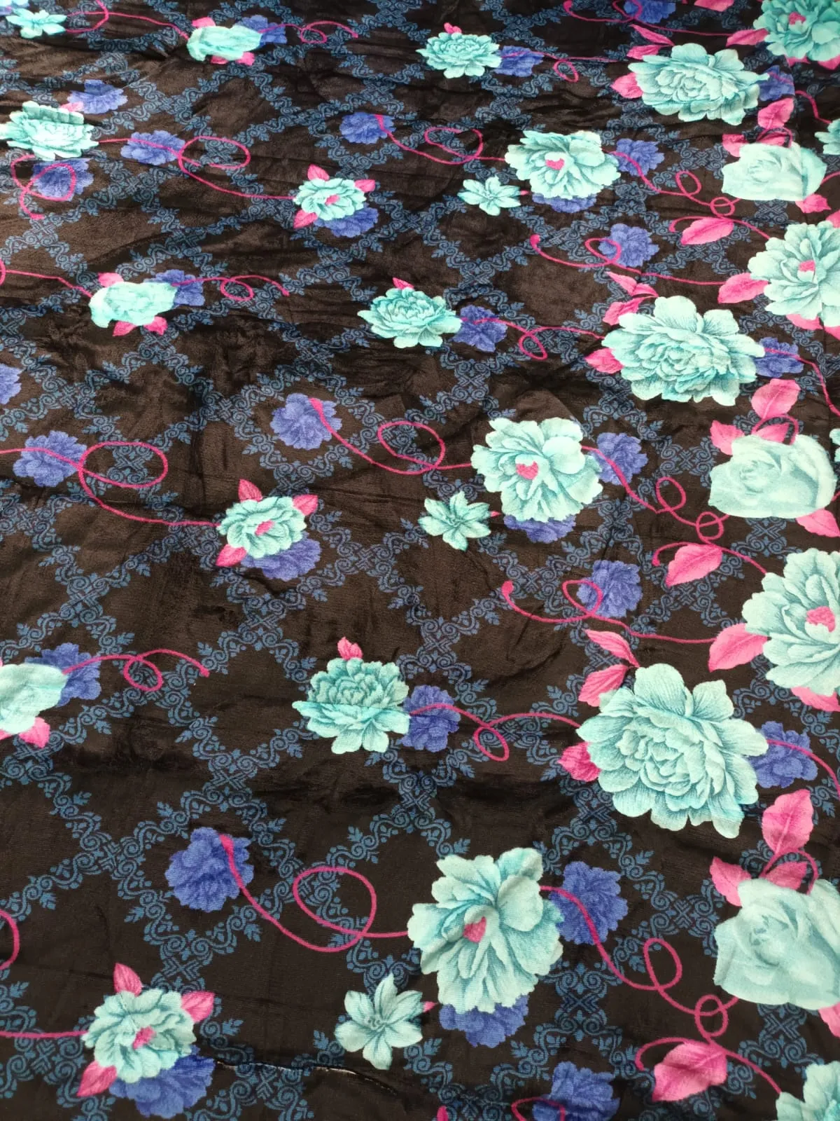 Edredón Enguatado Tamaño Queen - King Color Negro con Flores Celeste y Azul